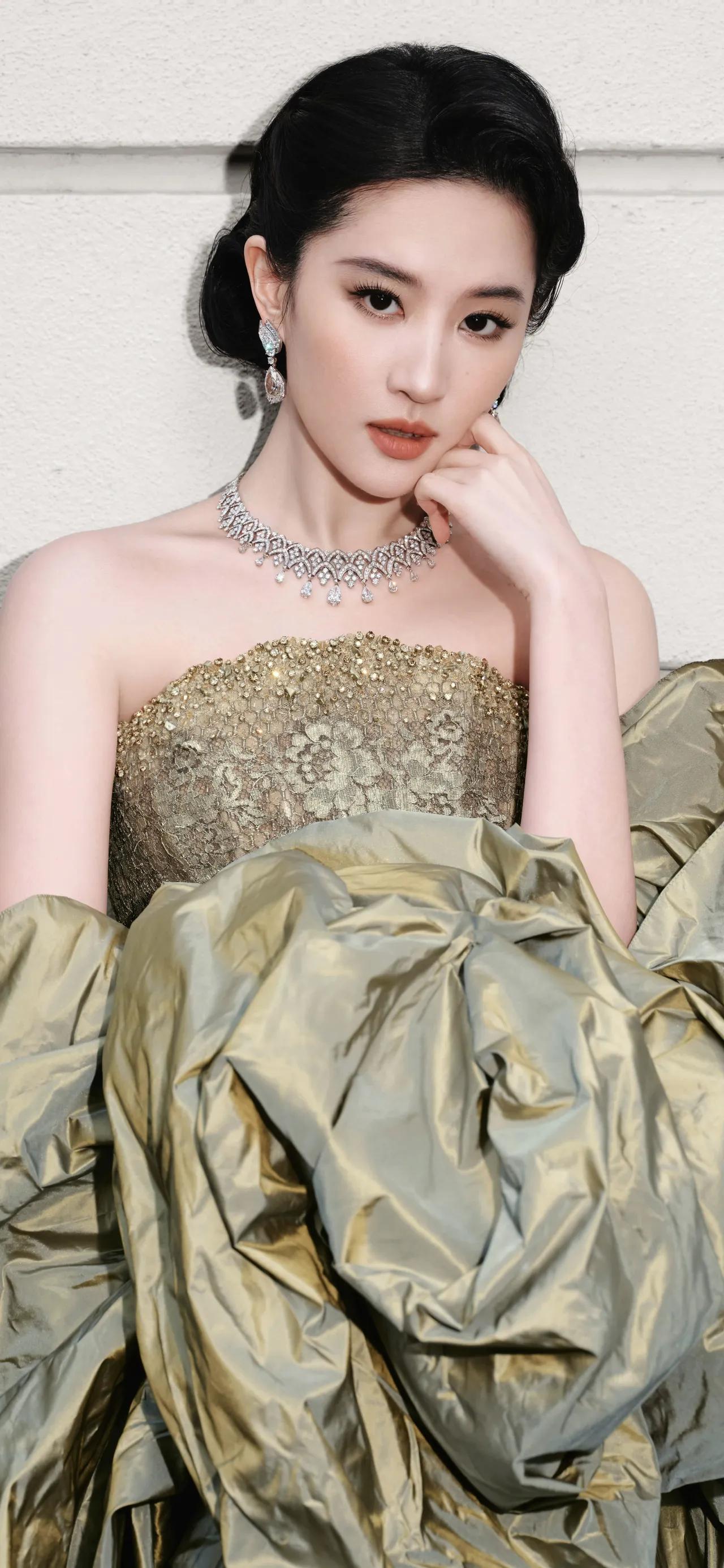 美女壁纸~刘亦菲,鎏金蕾丝晕染复古柔光,墨色盘发勾勒东方风骨