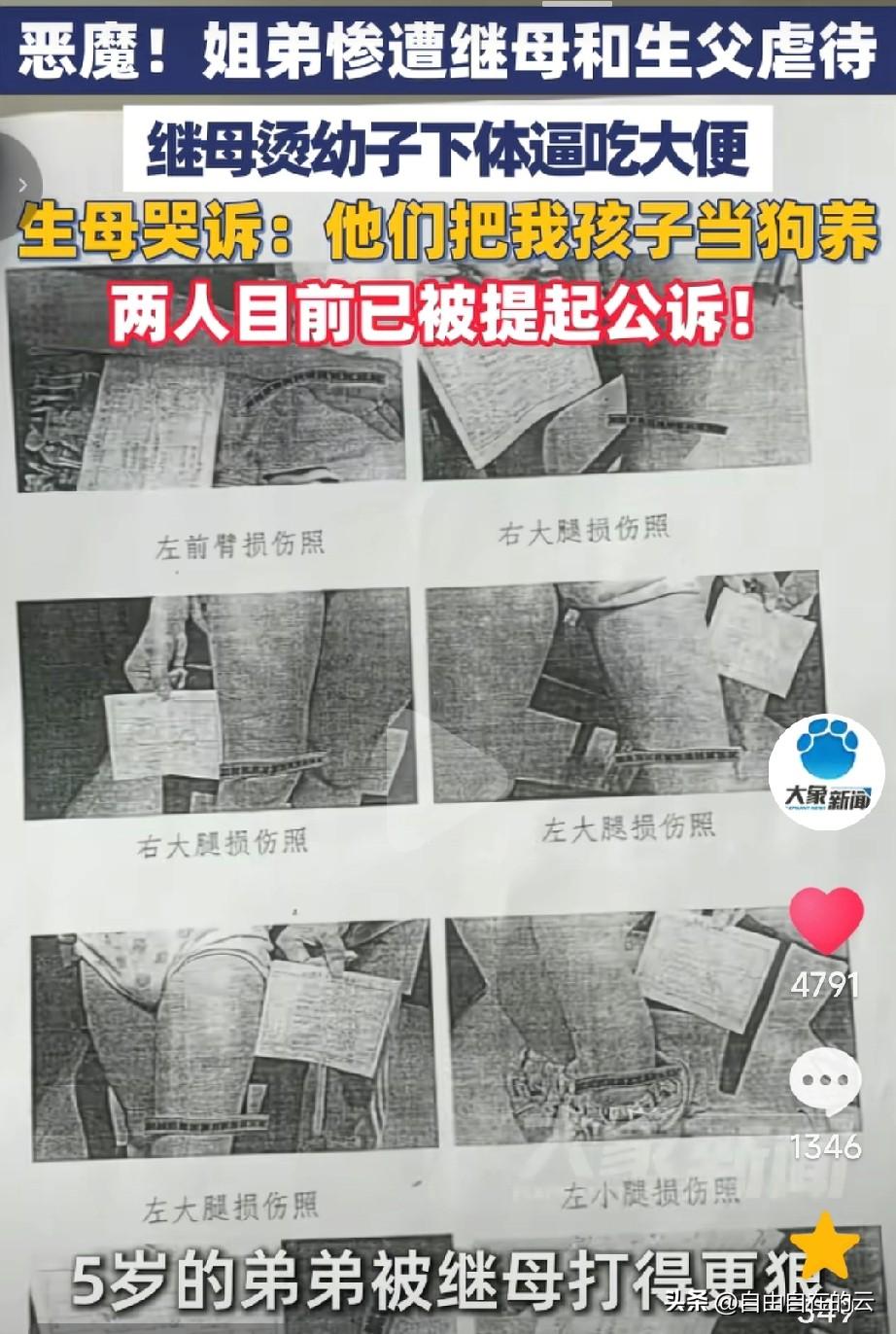 湖南的这对小姐弟太可怜了。两人父母离婚,本来家里有三个孩子,妈妈带走了中间的女儿,小儿子和大女儿跟着爸爸。爸爸娶了继母后,两个孩子一直被继母和亲爸虐待了5年。 直到妈妈去学校看他们才发现两个孩子一直被打。 姐姐叫小雅,父母离婚后,她一直跟着爸爸生活,弟弟叫小元宝,父母离婚时他才一岁,被妈妈带回湖北养到3岁后,送回爸爸这边。 他们的爸爸在小雅10岁,小元宝5岁的时候娶了继母,继母是市中医院烧伤科的护士。按理说,这个职业的人应该很有耐心,对孩子很好,可恰恰相反的是,继母来了,两个孩子的噩梦也随之而来。 小雅明明还是学生,学习成绩也不错,继母却说学习没用,家务活都交给她做,不给她学习的时间,她像是故意针对孩子,家里有洗衣机,却非让小雅用手洗。 只要有一点家务做不好,就被继母和父亲打,一次小雅擦桌子的时候有几粒米没有擦干净,就被继母揪着头发,拿着梳子打头,小雅头被打了个口子,不断的流血,父亲和继母也不管。小雅还是救助的邻居,后来在班主任的陪同下去的医院,缝了十几针。 弟弟小元宝更惨,被继母关在屋里不让出来,喂他大便,不给饭吃,把烂掉的西瓜给他吃。她嫌元宝脏,拿70℃的水给他洗澡,元宝的下面肿胀的很大,她也不给看,就从医院拿点消肿药给抹抹。 继母和他们的爸爸结婚后又有了自己的孩子,他们三人平时一桌吃饭,姐弟俩吃剩菜。他们从来也不带姐弟俩出去,过年过节的时候,他们一家三口回家,留他们在家,也不给他们留饭。弟弟就去垃圾桶翻找人家扔掉的食物,拿回家和姐姐吃。 有人说为什么姐弟俩的亲妈不管呢?事实是他们的妈妈每次去探望,都被他们的爸爸挡在门外。后来还是妈妈硬闯进学校,才见到了姐弟俩,妈妈说看到弟弟身上满是淤青的时候她吓坏了,带他去医院检查,医生说他身上有47%的伤,已经构成轻伤了。她就报警了。 两个孩子太可怜了,希望伤害他们的人能得到严惩。
