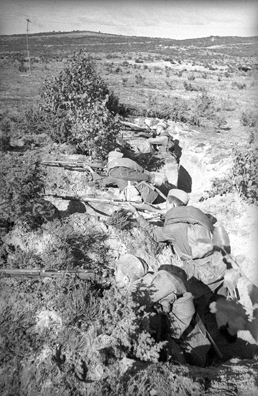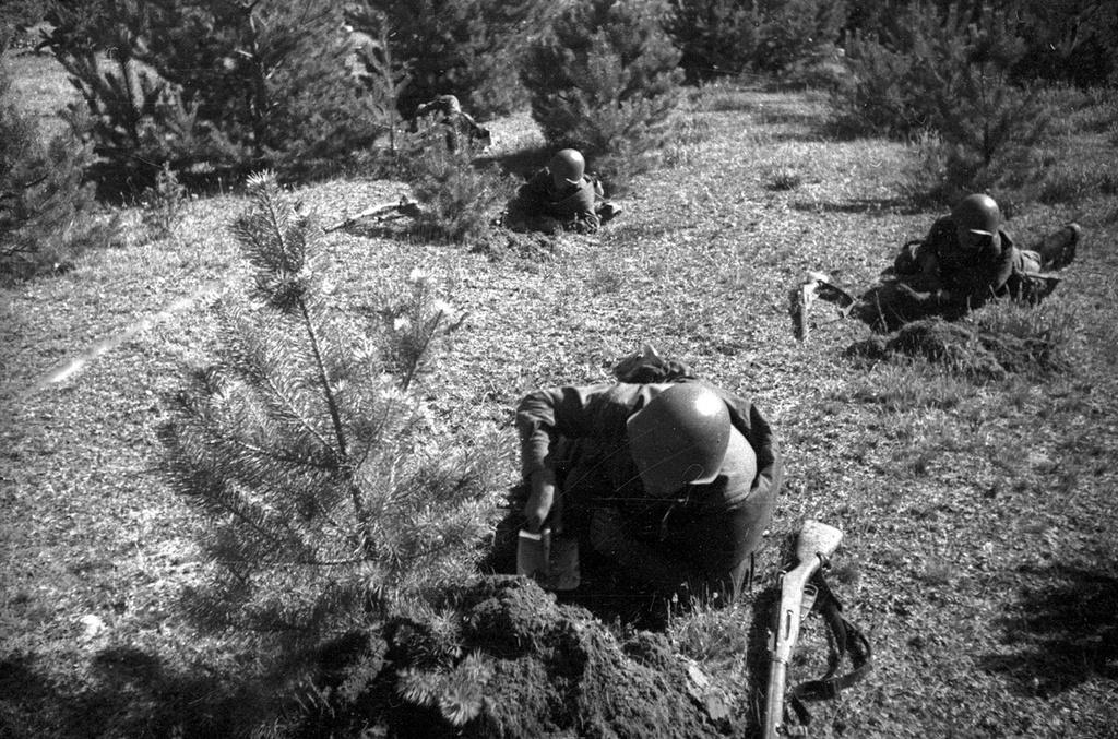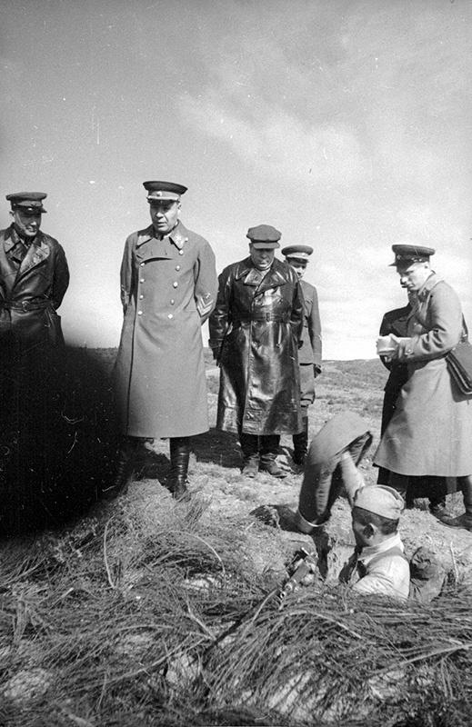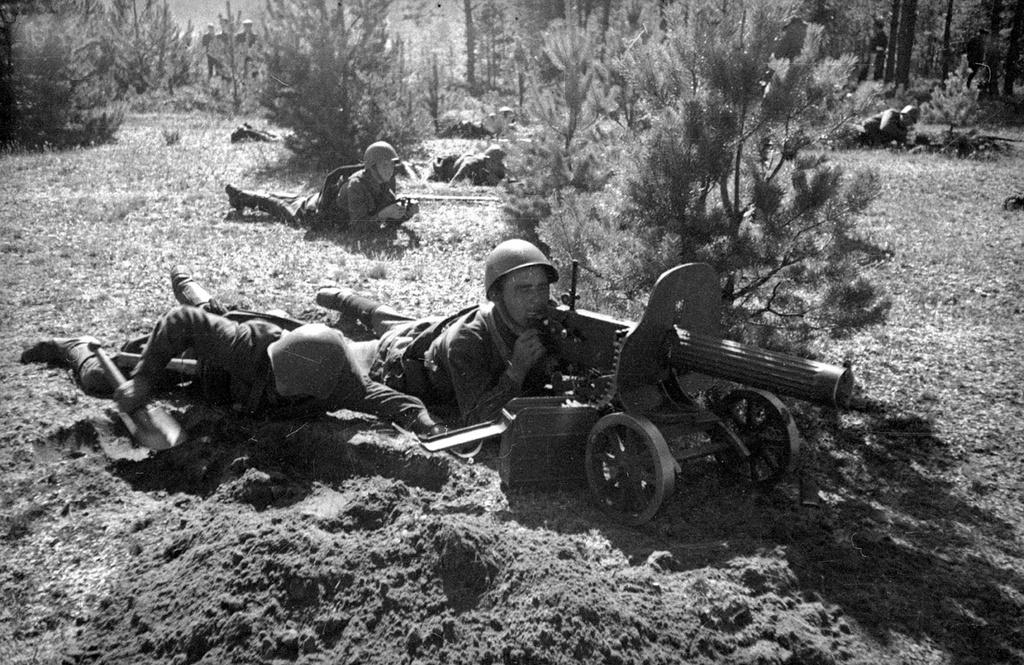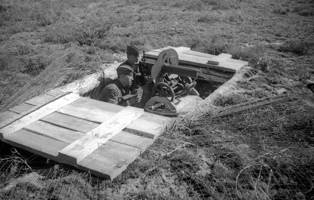 本组老照片均出自亚历山大・乌斯季诺夫之手,真实记录了苏联红军西部特别军区的战术演习现场:机枪手在战壕内就位、开展战术训练、奋力构筑工事。人民委员谢苗・铁木辛哥亲自视察部队伪装情况,还与赫列诺夫一同检查阵地部署,真实再现了当年苏军的战备训练与高层视察场景。