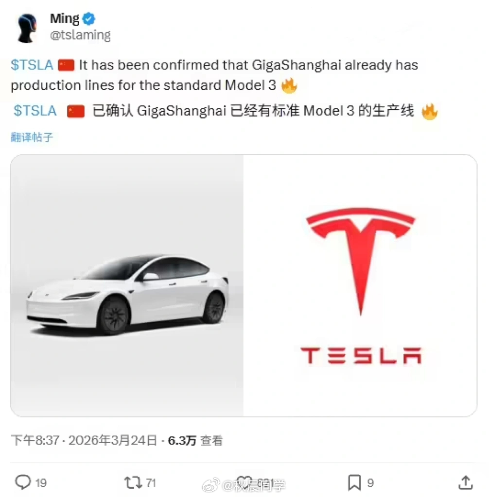 网传,特斯拉正准备在中国市场推出 Model 3 标准版车型,上海超级工厂已建成相关生产线。