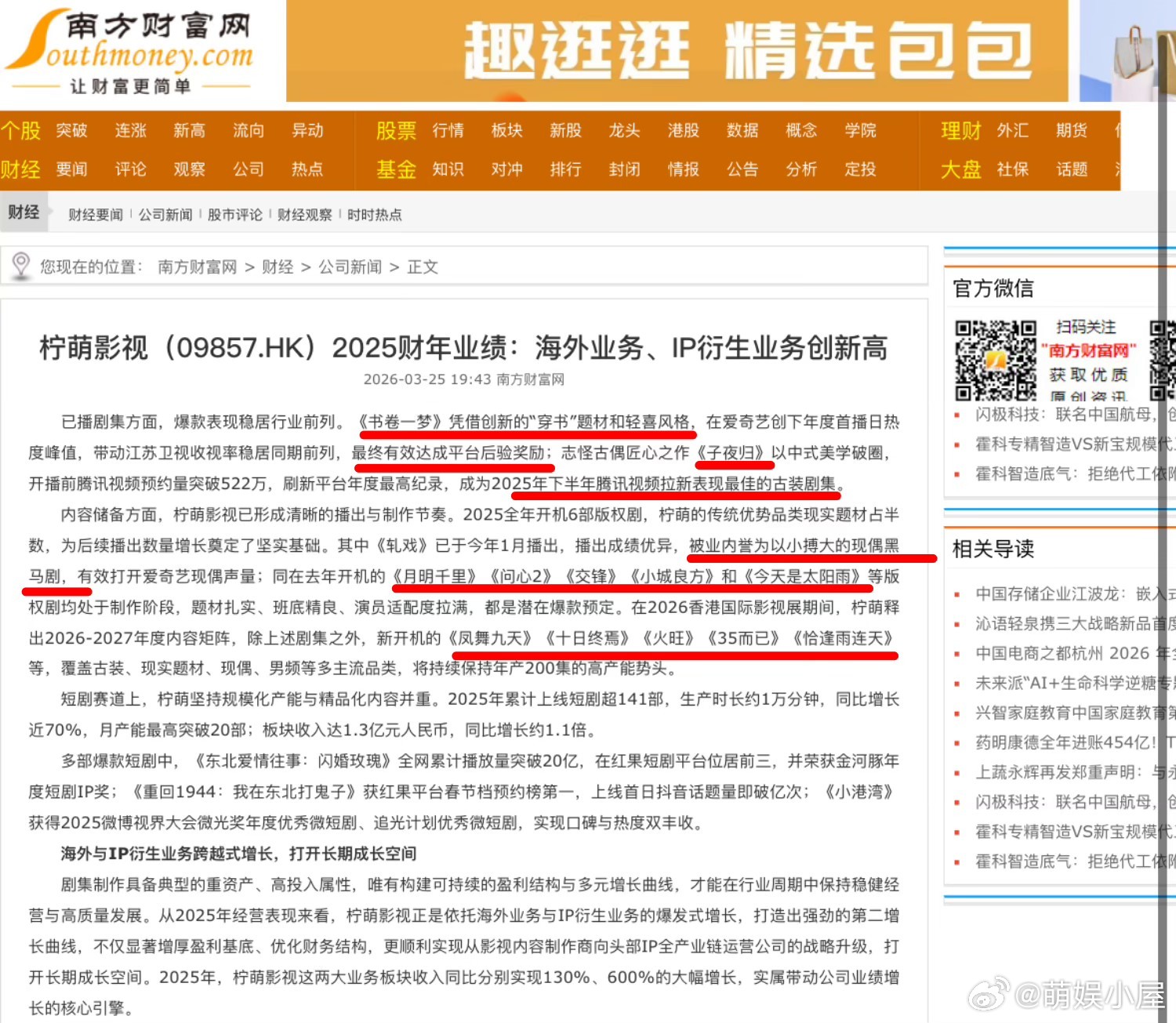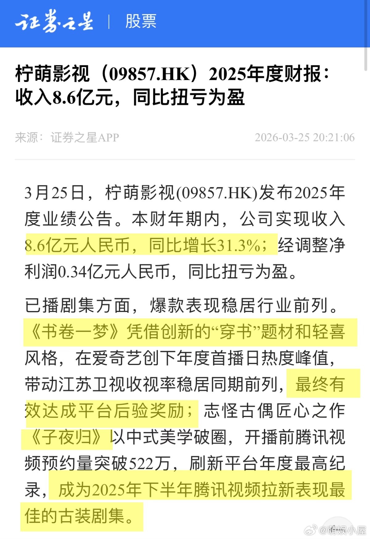 柠萌影视2025年开机量最高柠萌2025年财报盈利 柠萌真的太稳了!2025 年