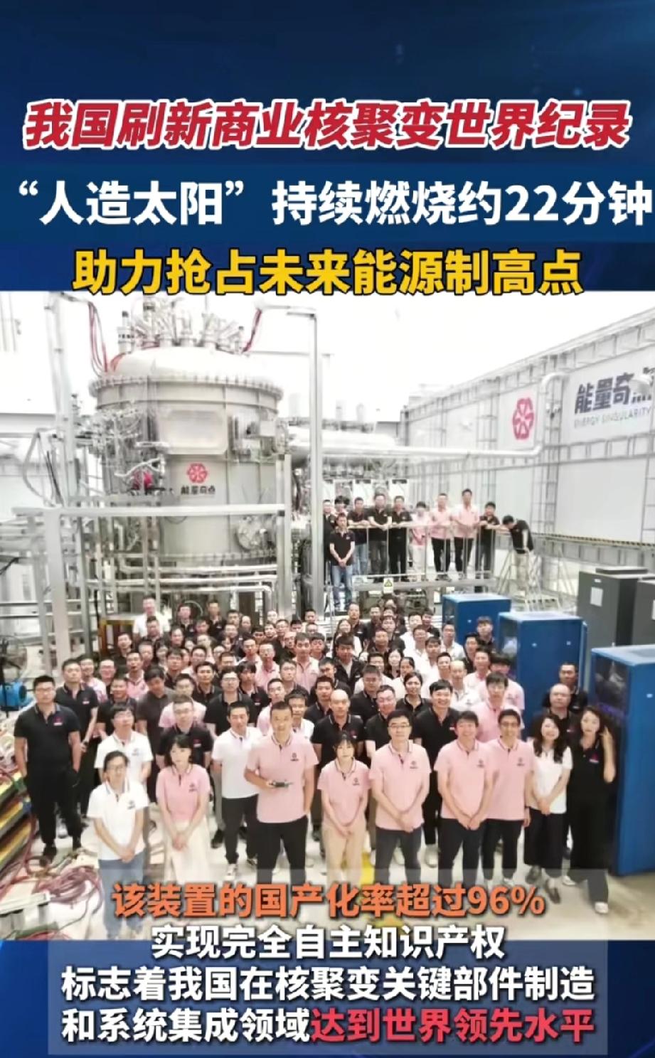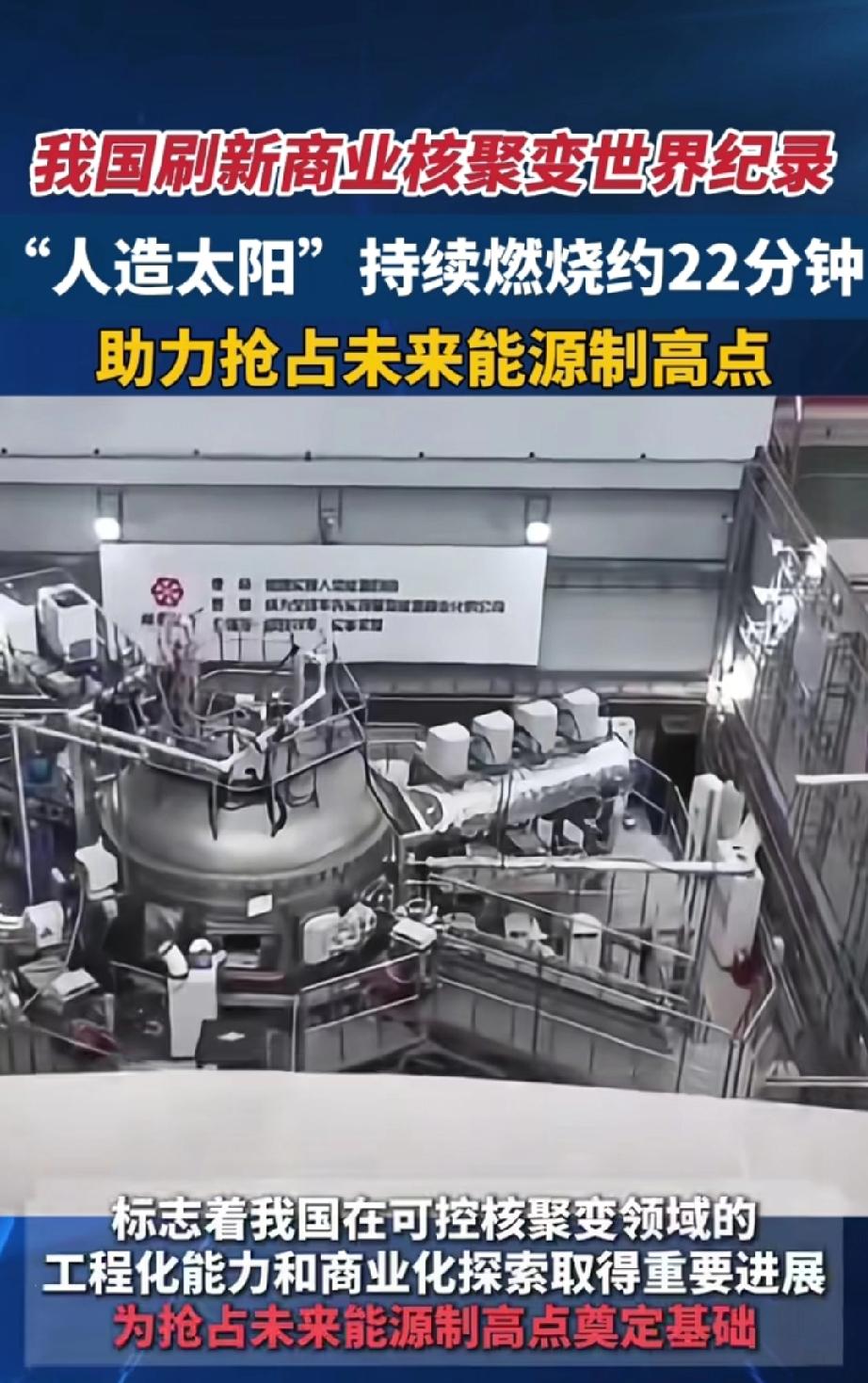 我国刷新商业核聚变世界纪录。 2026年3月25日,上海临港传来好消息,我国自主