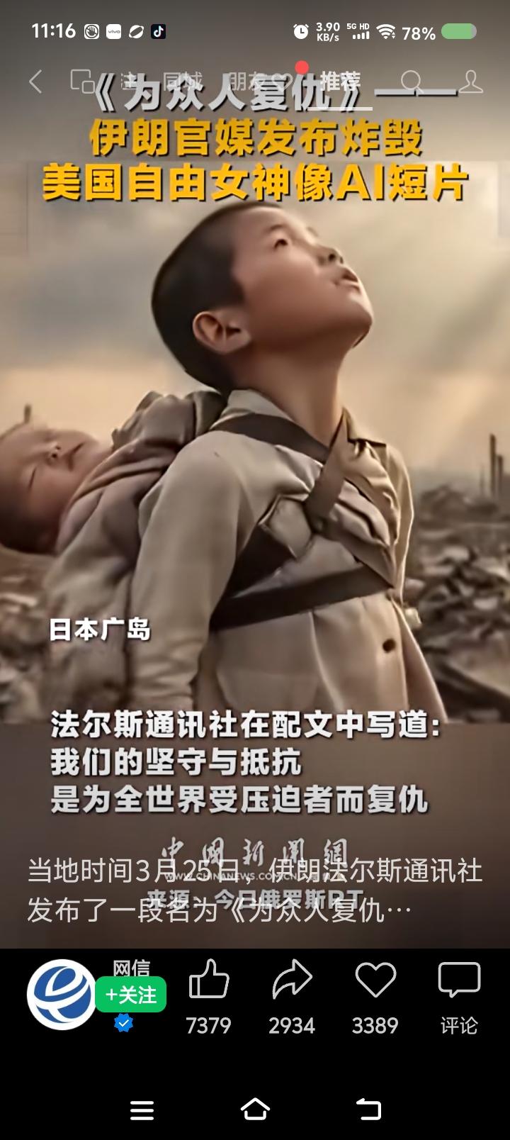 伊朗犯了一个错误—— 据报道,伊朗发布AI视频:为全世界受压迫者复仇,炸毁了“自由女神像”。受压迫者有美国原住民、日本广岛人、越南人、也门人、巴勒斯坦人、爱泼斯坦岛受害者、伊朗人。 点评: 伊朗,你犯了一个错误,请将“日本广岛人”移除出受压迫者名单。 日本侵略者对中国等国发动侵略,犯下诸多罪行。美国在二战中后期反侵略,向日本投原子弹,是反法西斯的正义之举,也是美国历史上为数不多的可圈可点之处。 日本没有资格以受害方自居,混淆是非,转移焦点,掩盖真相,企图死灰复燃。