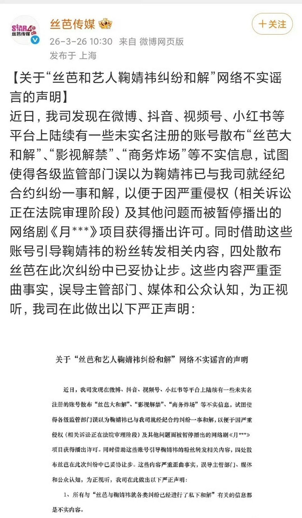 曝月鳞绮纪又撤档了鞠婧祎和丝芭的纠纷解决之前,作品估计很难播出了。演员风险。