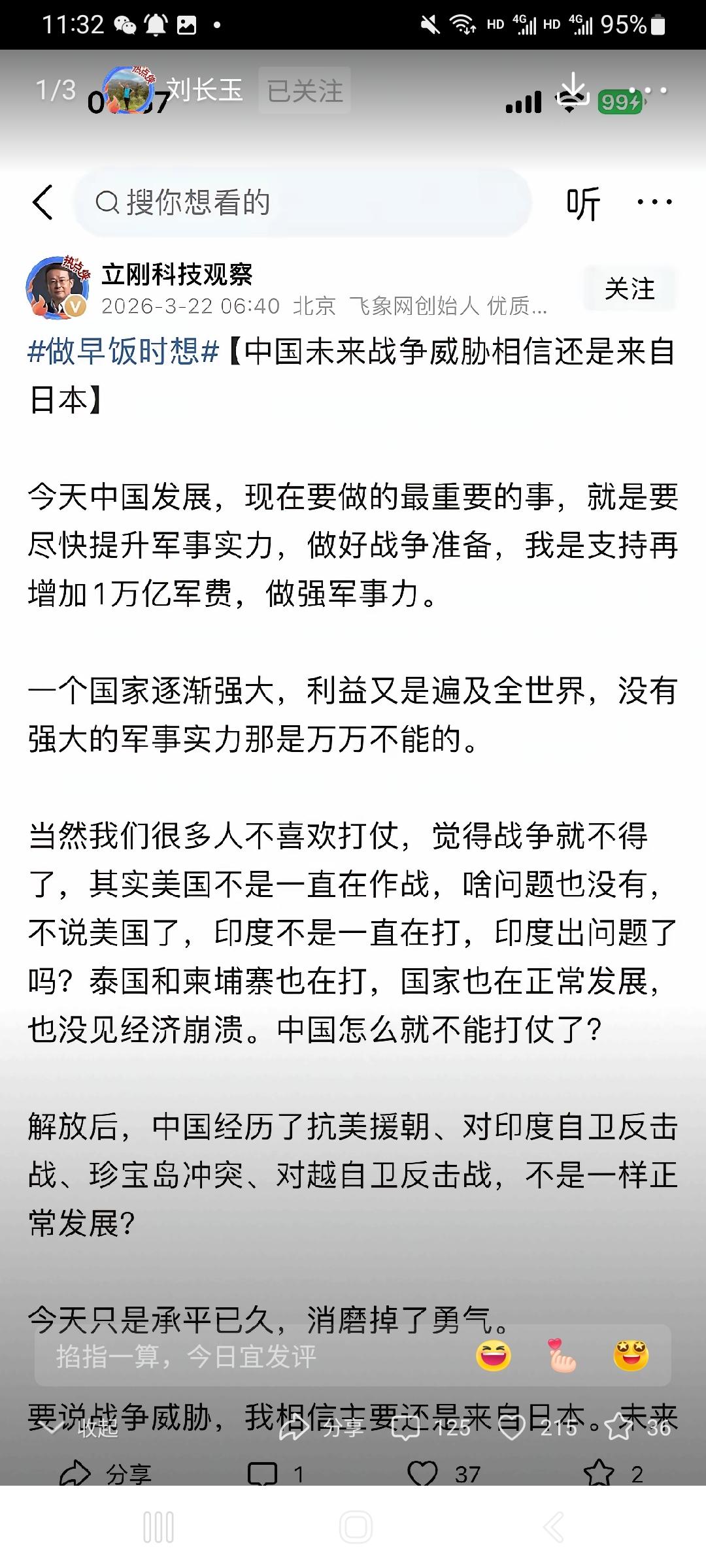 未来有没有战争,没法预测。但是让项立刚这样的小丑在网上胡说八道带风向,让整个国家