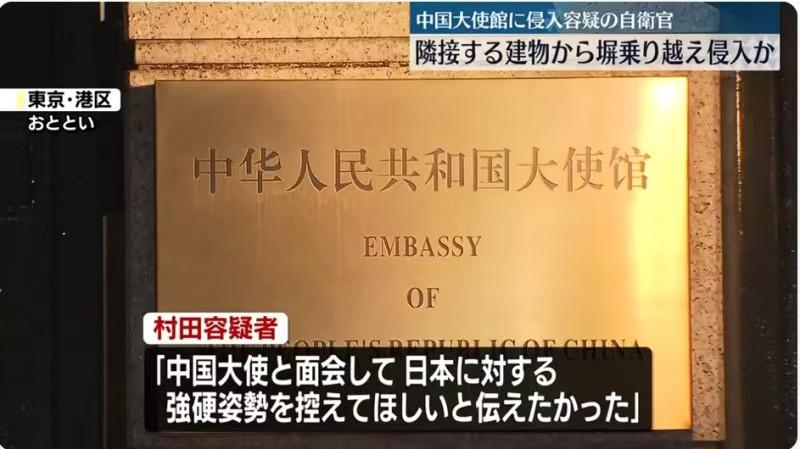 村田晃大图像公开-持械侵略中国使馆 3月26日《日本新闻网》公开了警方逮捕入侵我使馆的日本自卫队军官、三等陆尉村田晃大(23岁)的图像画面。 面对镜头,却面带微笑,无知与无耻都写在了脸上。 根据国际法,每个外国使领馆都是各自国家领土的延伸,神圣不可侵犯。