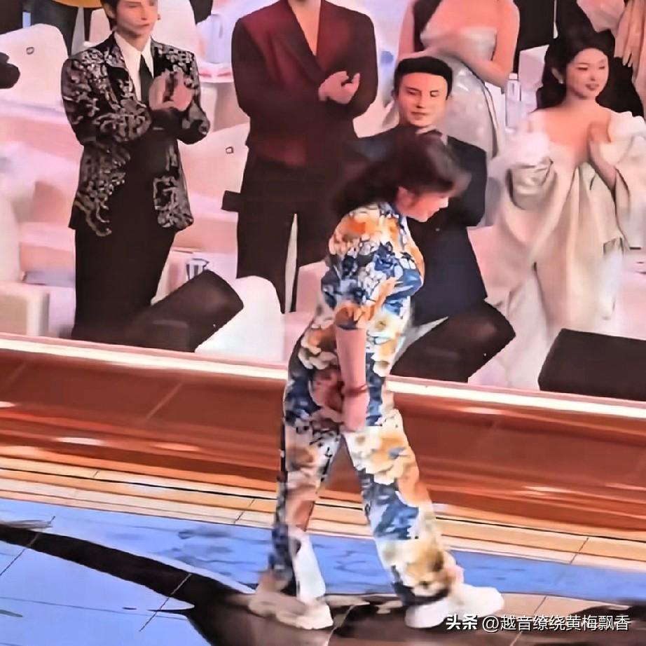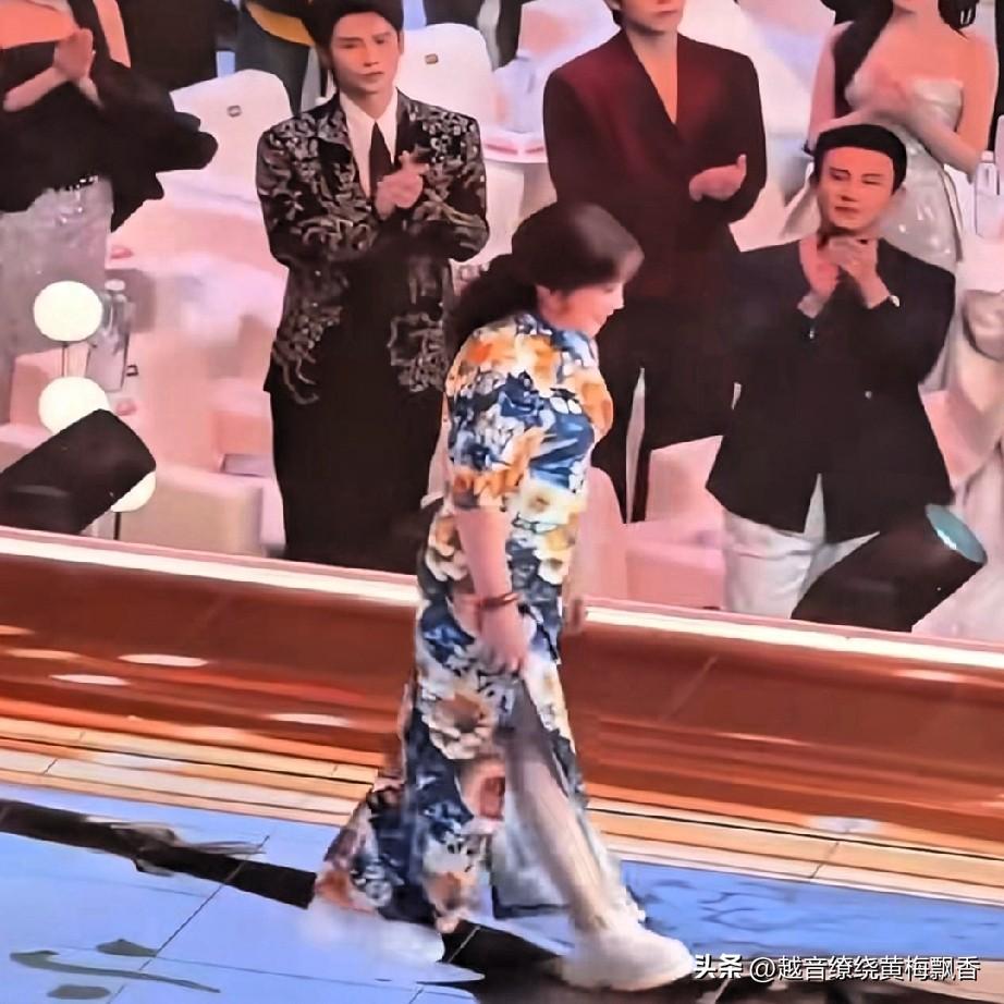 刘晓庆穿着一身花色旗袍上台领奖,所有的人站起来为她鼓掌,从图片上看,75岁的刘晓庆体态臃肿,脚上穿着一双白色旅游鞋,精神状态还算不错。有网友吐槽她不会穿搭,说旗袍搭配旅游鞋不伦不类的。其实到了她这个岁数,就是要穿自己舒服的鞋子,旗袍是出席活动需要,鞋子是因为穿的安全舒服需要,她既尊重了别人也保护了自己,有什么不好的呢?如果让她穿一双恨天高,又有人说装嫩之类的话了。 刘晓庆不论怎么穿搭都是她自己的自由,更何况邀请方也没有说什么,可见刘晓庆在影视界的地位了。