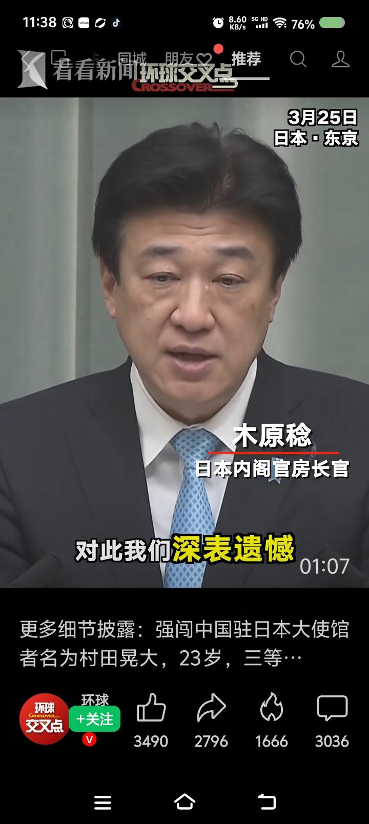 日本人,收回你的遗憾—— 据报道,日本有关官员对日本陆上自卫队某成员持武器闯入中国驻日大使馆一事表示遗憾。 点评: “遗憾”? 烦透了日本人的鞠躬礼、遗憾说! 中国人不原谅明知故犯的行径!中方态度很明确:根源在日本右翼势力泛滥,军国主义死灰复燃! 如果“遗憾”可以了结,要正义何在?中国人天天去日本那个什么皇宫,拿着剑去房梁上舞一圈,连续舞30000年,把那个什么皇吓得几世几代不孕不育,然后说“遗憾!你们咋这么胆小”? 行不?回答我!