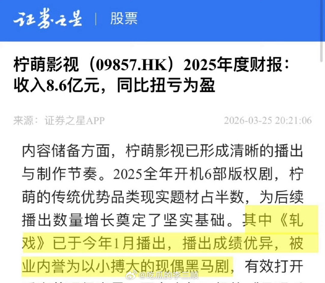 2025年柠萌财报夸了三部剧李一桐 刘宇宁《书卷一梦》许凯 田曦薇《子夜归》陈星旭 卢昱晓《轧戏》