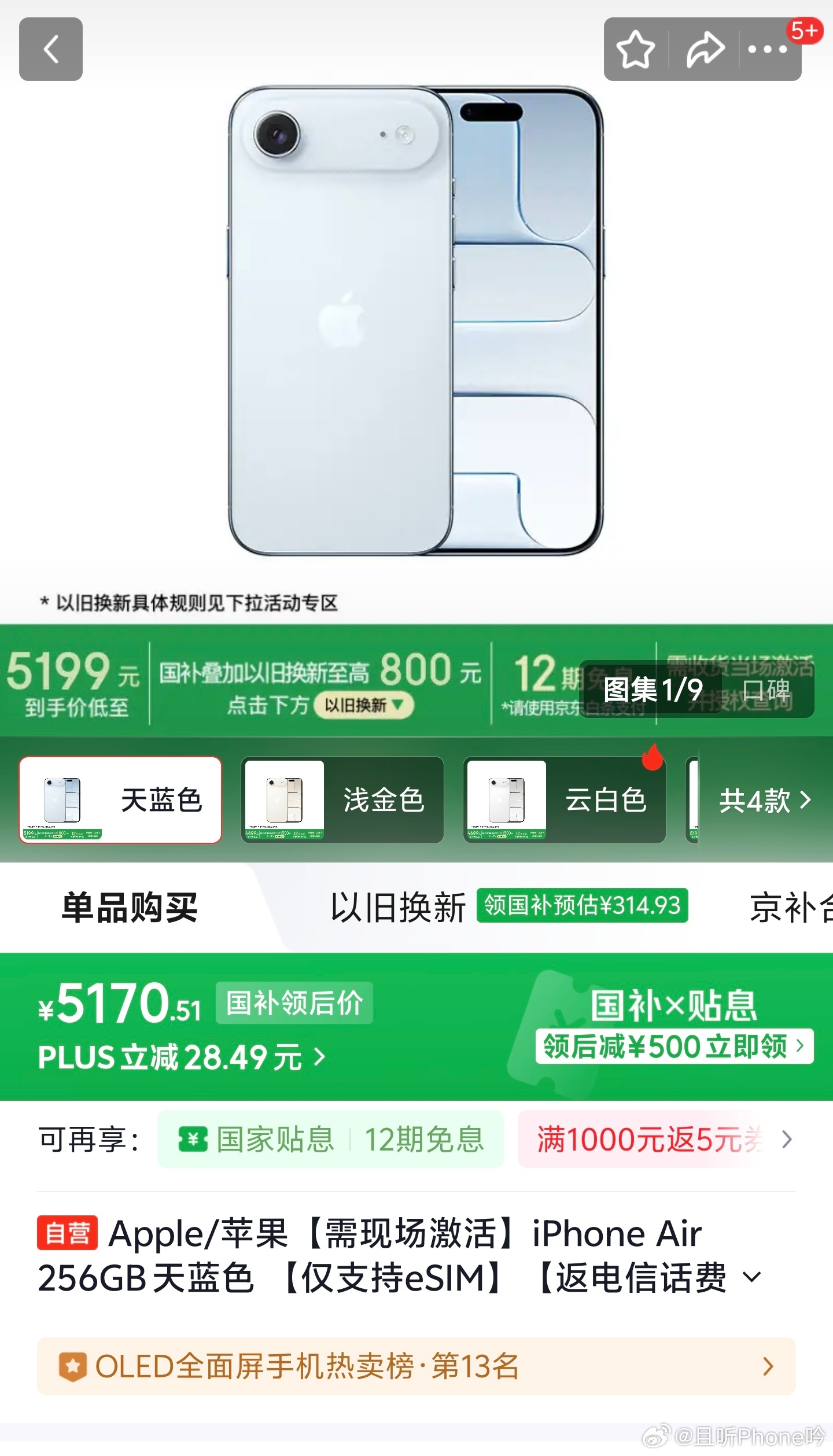 iPhoneAir销量又要走一波了,目前又干到5000了,如果有旧手机回