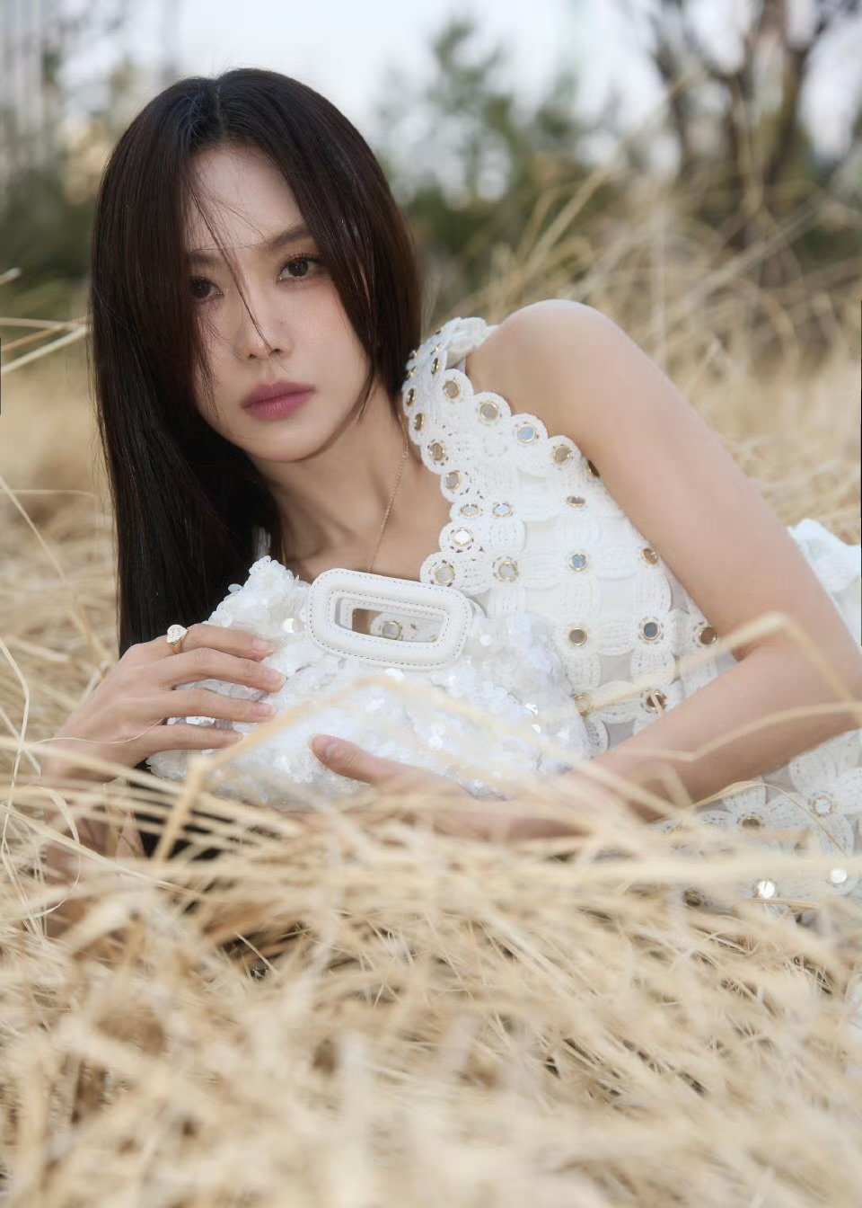 王霏霏白色镂空套装王霏霏上海见 这个王霏霏也太美了吧!