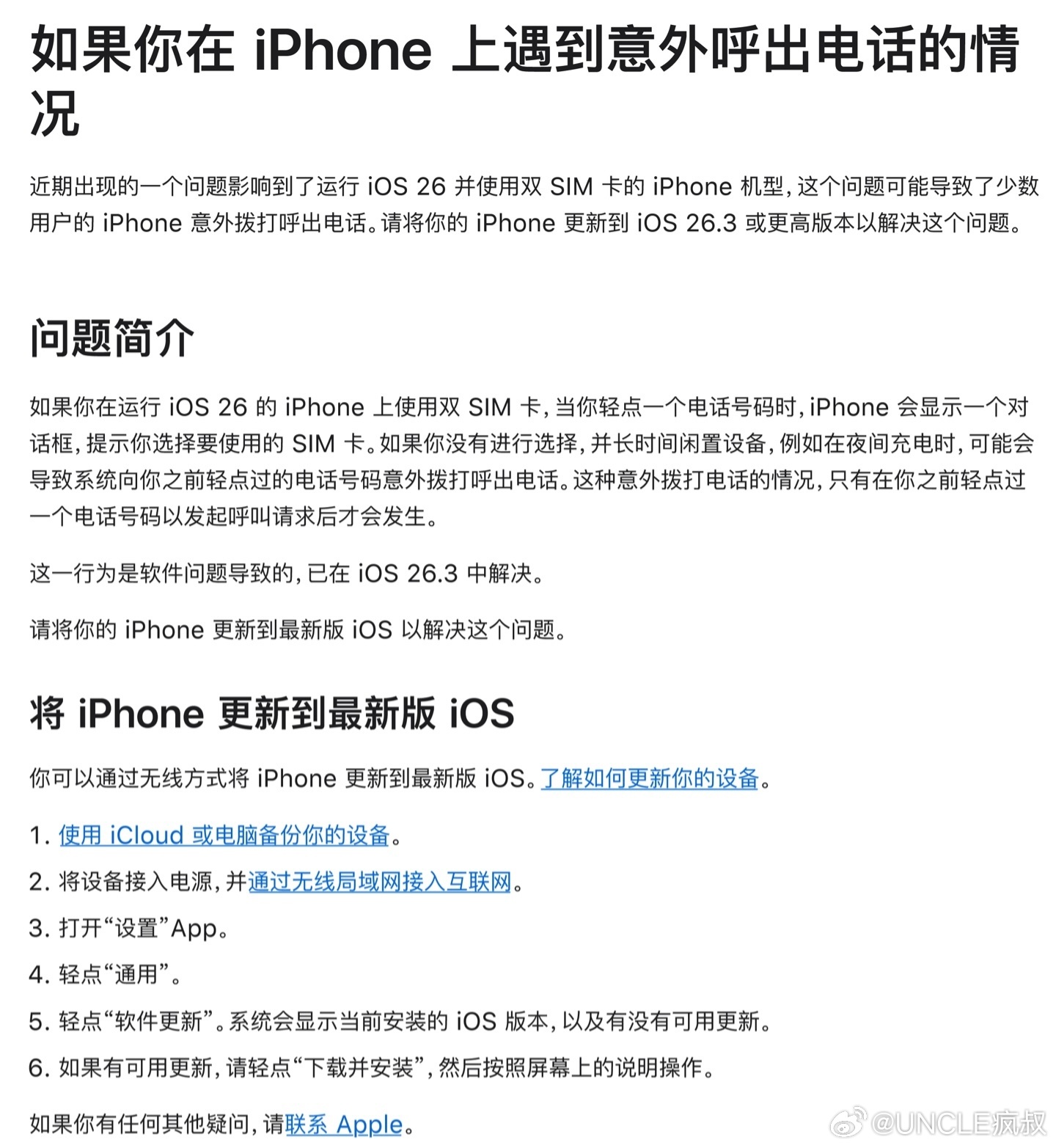 苹果发布官方指南称:如果你碰到了iPhone自动拨号给其他人的情况,请尽快将系统