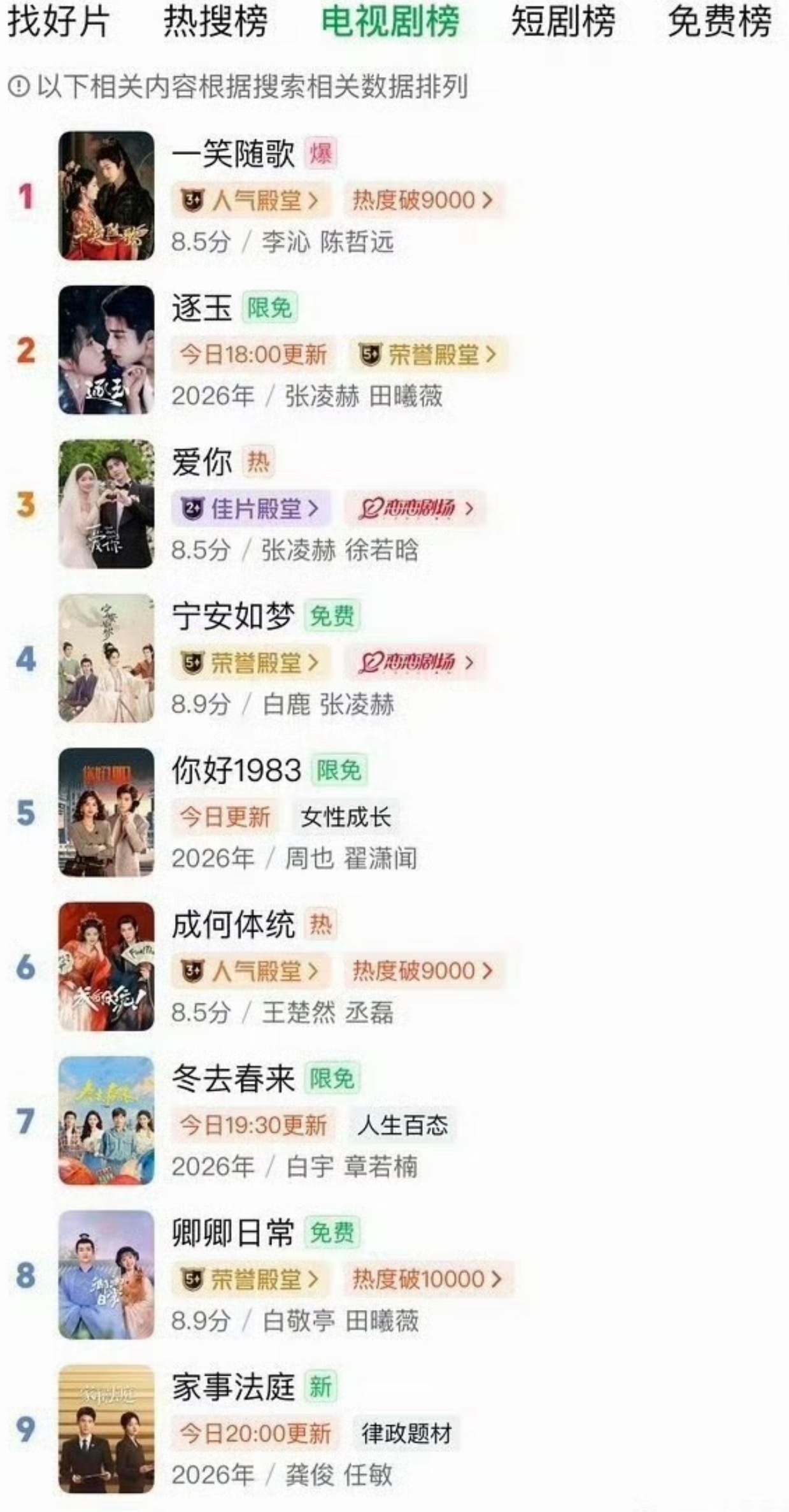 额陈哲远的一笑随歌热度竟然超过了张凌赫的逐玉