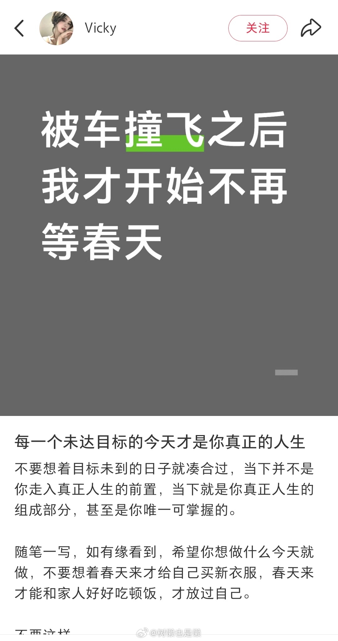 挺有同感的…两年多前被撞了后更是想通了很多事原本我就不是很内耗的性子,现在更是内耗不了一点那会从医院回来点开微博,发现草稿箱还有东西没发,那时候我就在想,如果就此离开了,我甚至没法把这些话发出去,更别说其他的遗憾“人是随时会死的。” 结合最近知名老师意外离世的事件,更要提醒自己,珍惜还活着的每一个当下🤲🏻(以及少熬夜!)网页链接