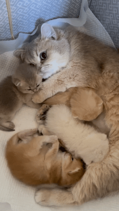 半夜起来去看刚生完崽的母猫,本来就想悄悄瞄一眼崽子们安不安稳,一开灯直接被整破防了! 猫妈妈压根没睡,眼睛瞪得又圆又亮,全程死死盯着我,浑身都透着一股“别碰我孩子”的紧绷感,那警惕劲儿,活脱脱一个守娃哨兵,生怕我半夜偷偷抱走它的小宝贝。 我在旁边看了好一会儿,它眼神就没离开过我,护崽护得特别紧。再看窝里的小奶猫,一个个拱着吃奶、乖乖睡觉,软乎乎的特别安心。其实我哪会动它的娃,就是心疼又好笑,当妈之后不管是人还是猫,本能里全是守护。 母性真的太戳人了,平时再温顺的猫咪,有了娃瞬间变身硬核守护神。你们家猫咪生完宝宝是不是也这样护犊子? 养猫真的很治愈吗