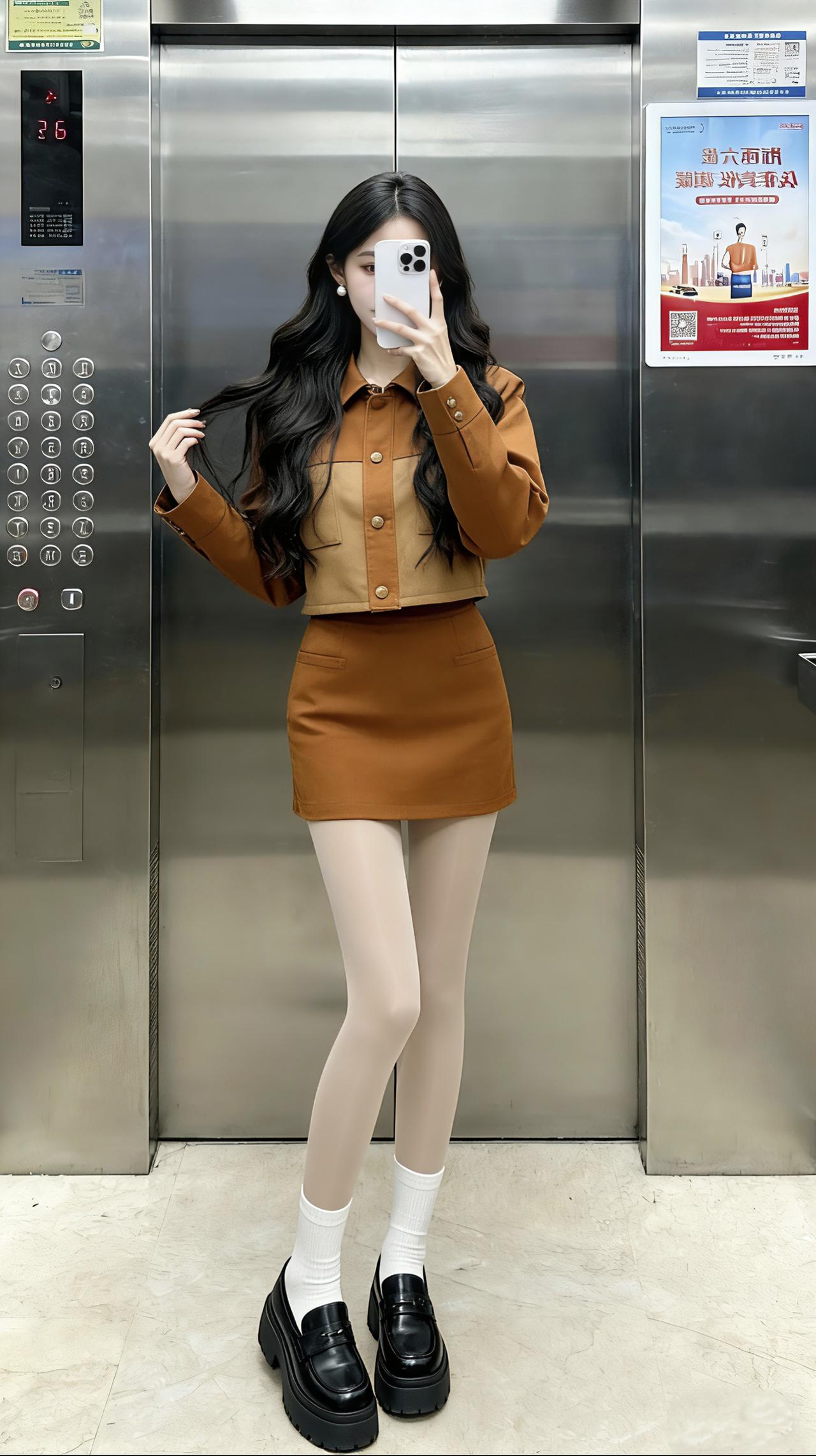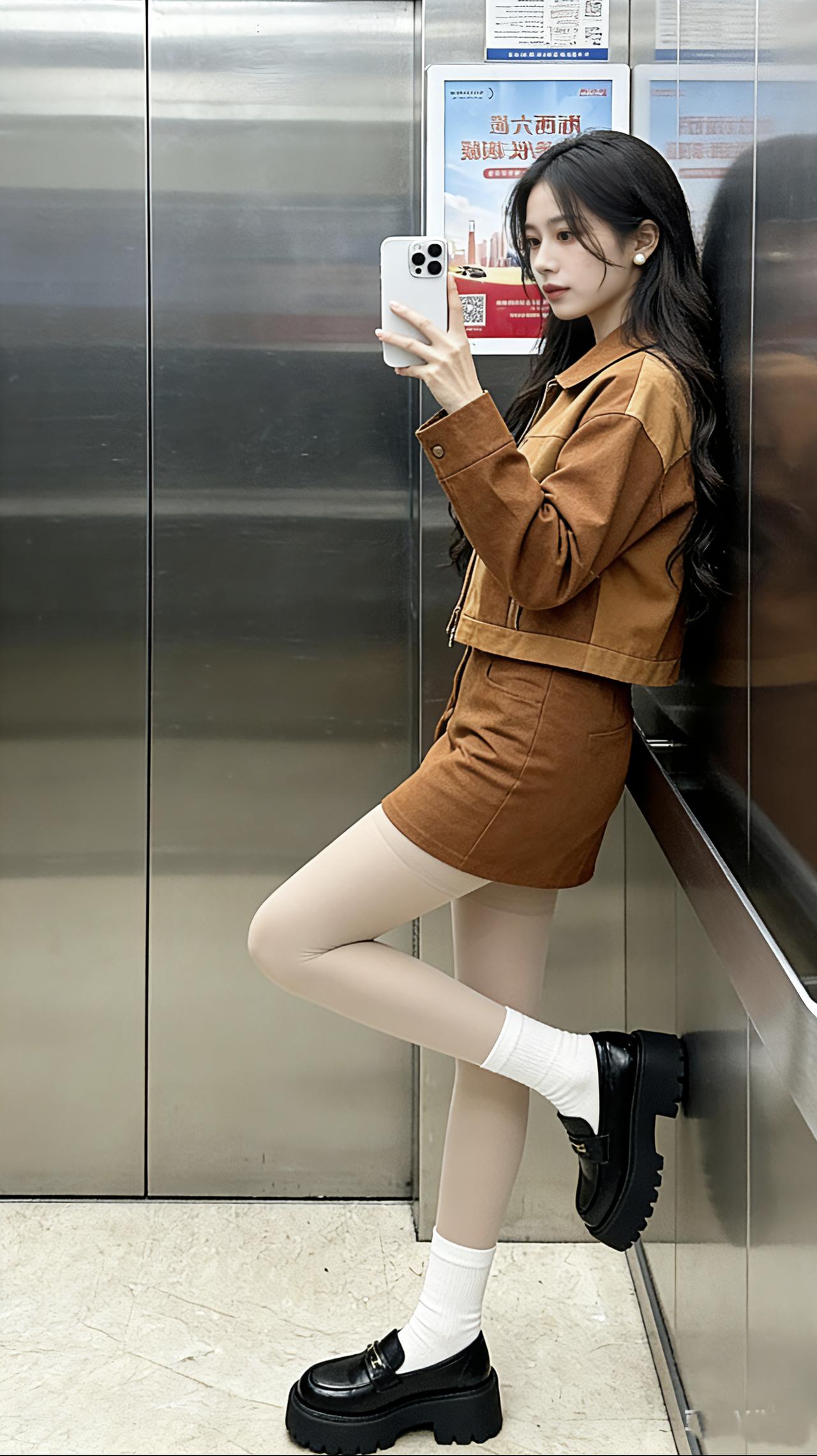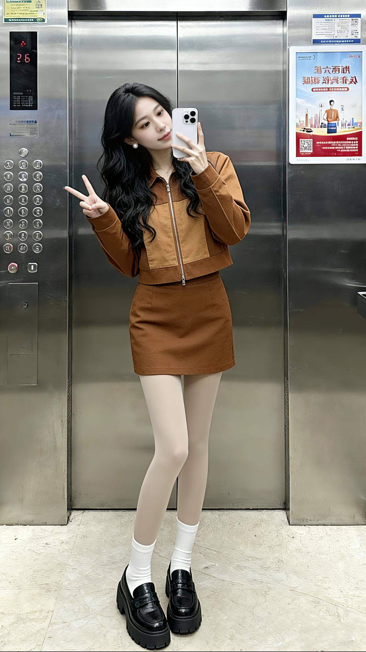 甜妹 甜美穿搭 甜妹穿搭 丝袜穿搭 电梯拍照