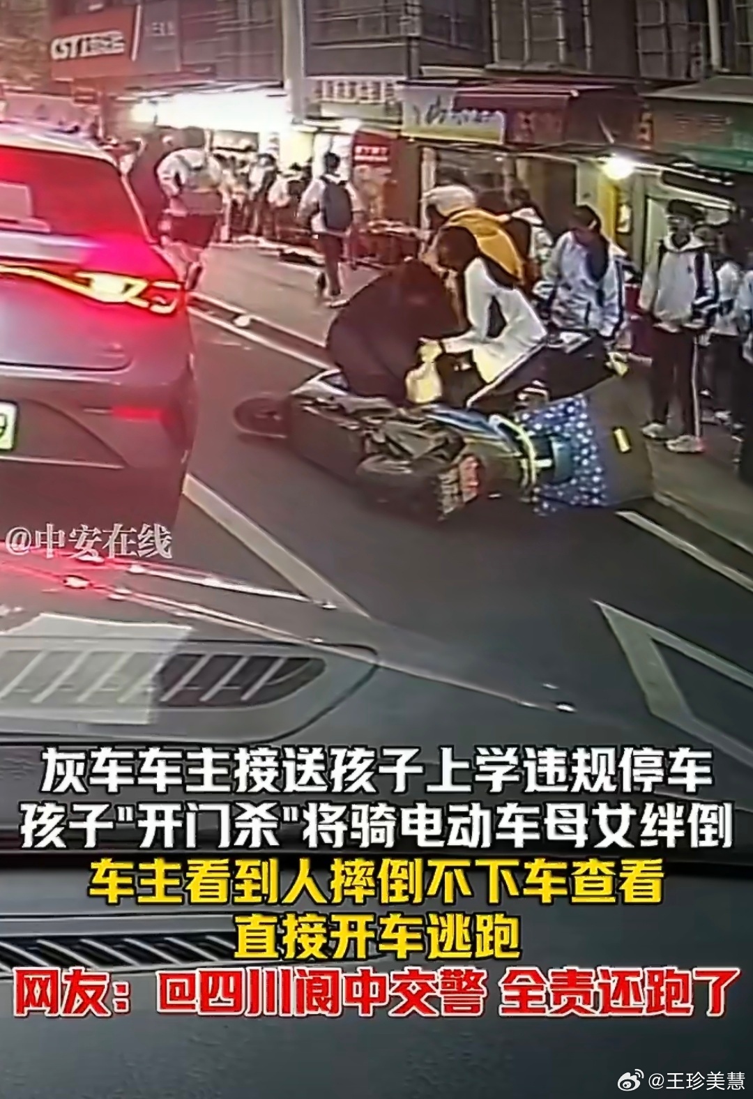 家长违停孩子开门杀撞人后逃逸现在的一些司机总觉得整个马路都是他家的停车稍微靠边点不会看看后视镜再让乘客下车也不会开门杀完了居然还跑了你敢信?