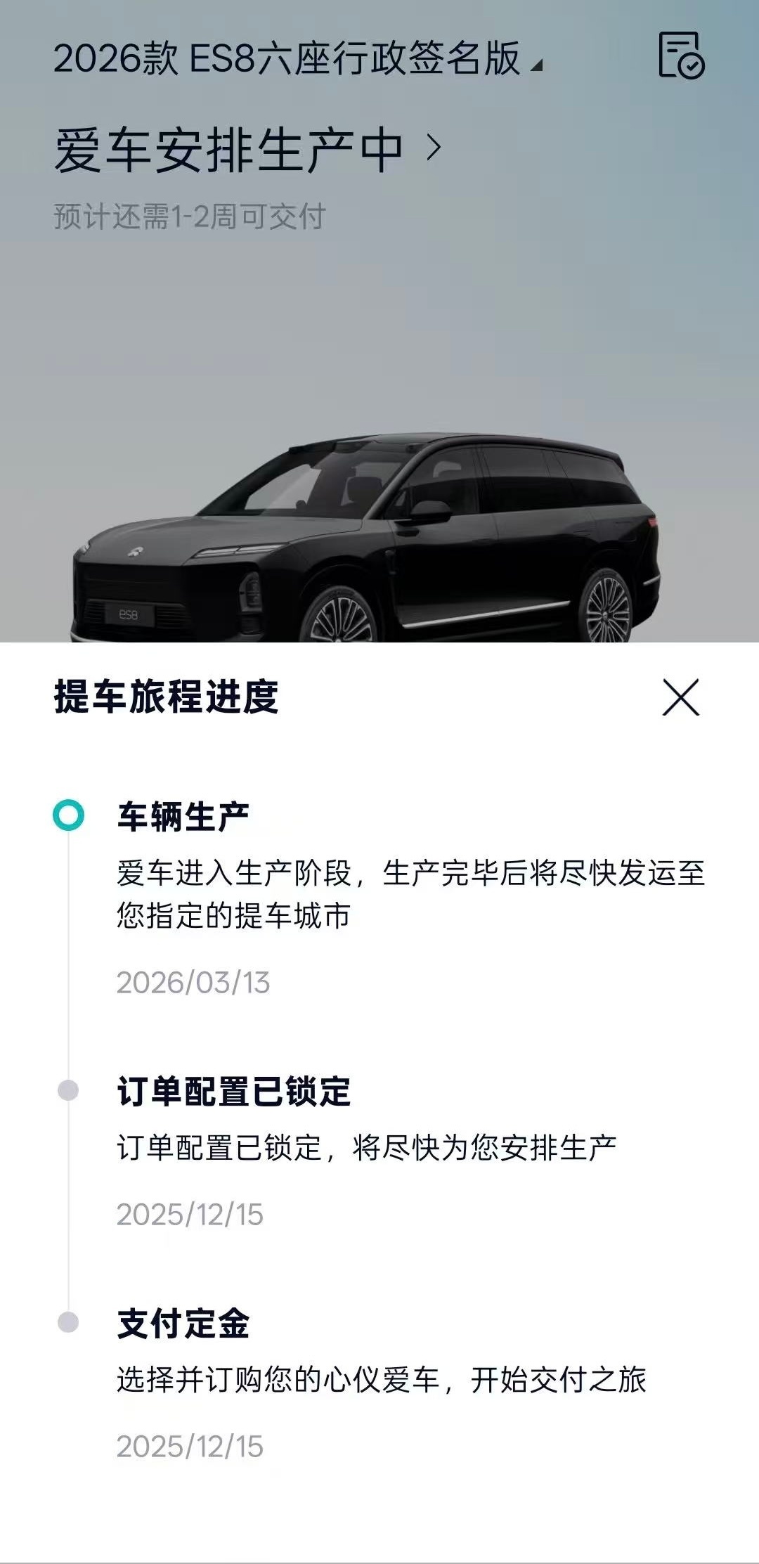 年前下定的蔚来ES8终于可以提车了,可惜我昨天回老家陪奶奶看病呢,没办法第一时间