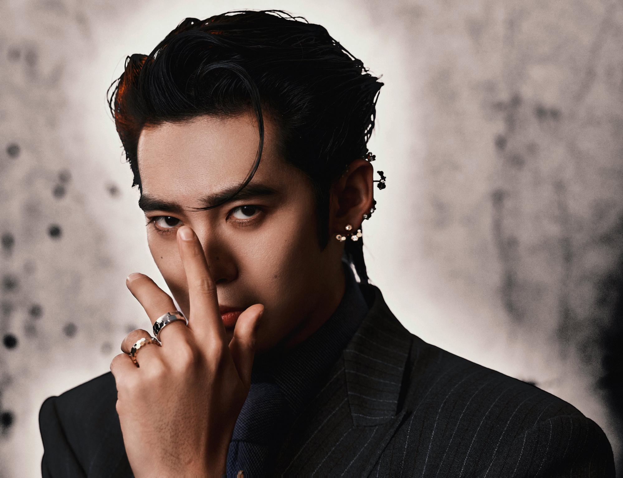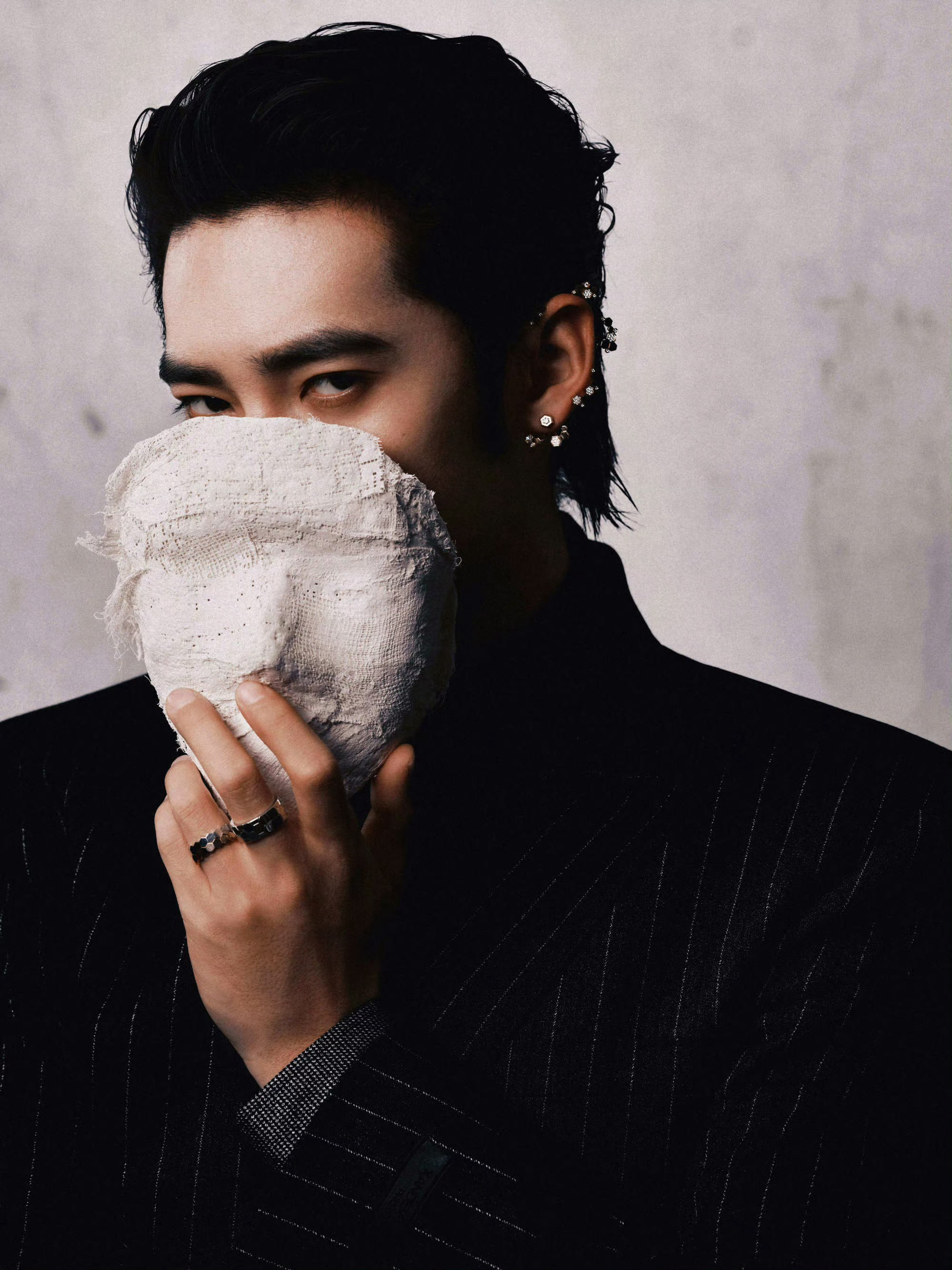 于适活动造型大片佩戴Chaumet珠宝,化身暗夜爵士。