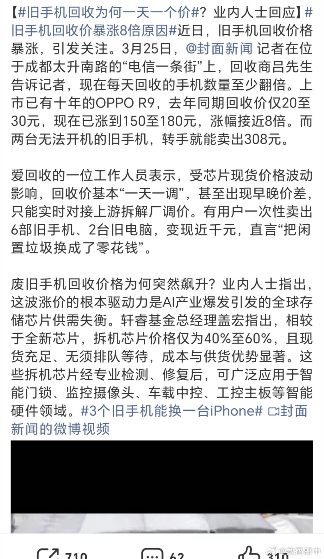 旧手机回收价暴涨8倍原因怎么广告费用又到了,OPPO r9上哪卖150去,最近天天二手机上热搜,又有资本入局了吗这种老爷机拆下来的芯片也没啥用啊,小厂卖不上价,大厂用不着呀