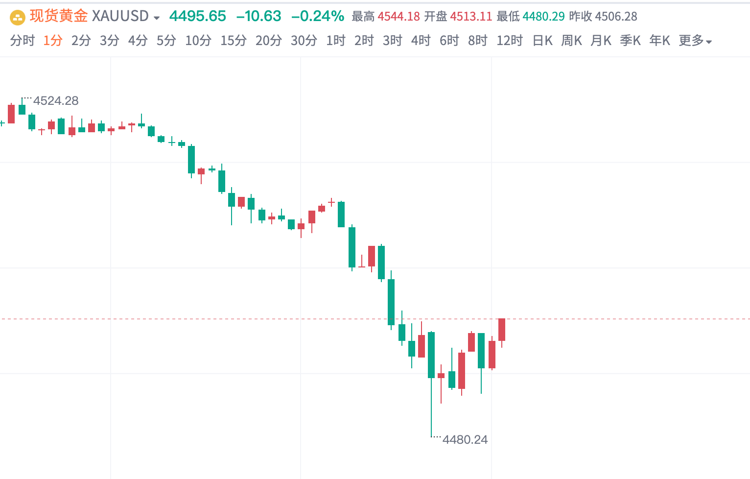 黄金4480多,抵达4495平仓,首斩150点!