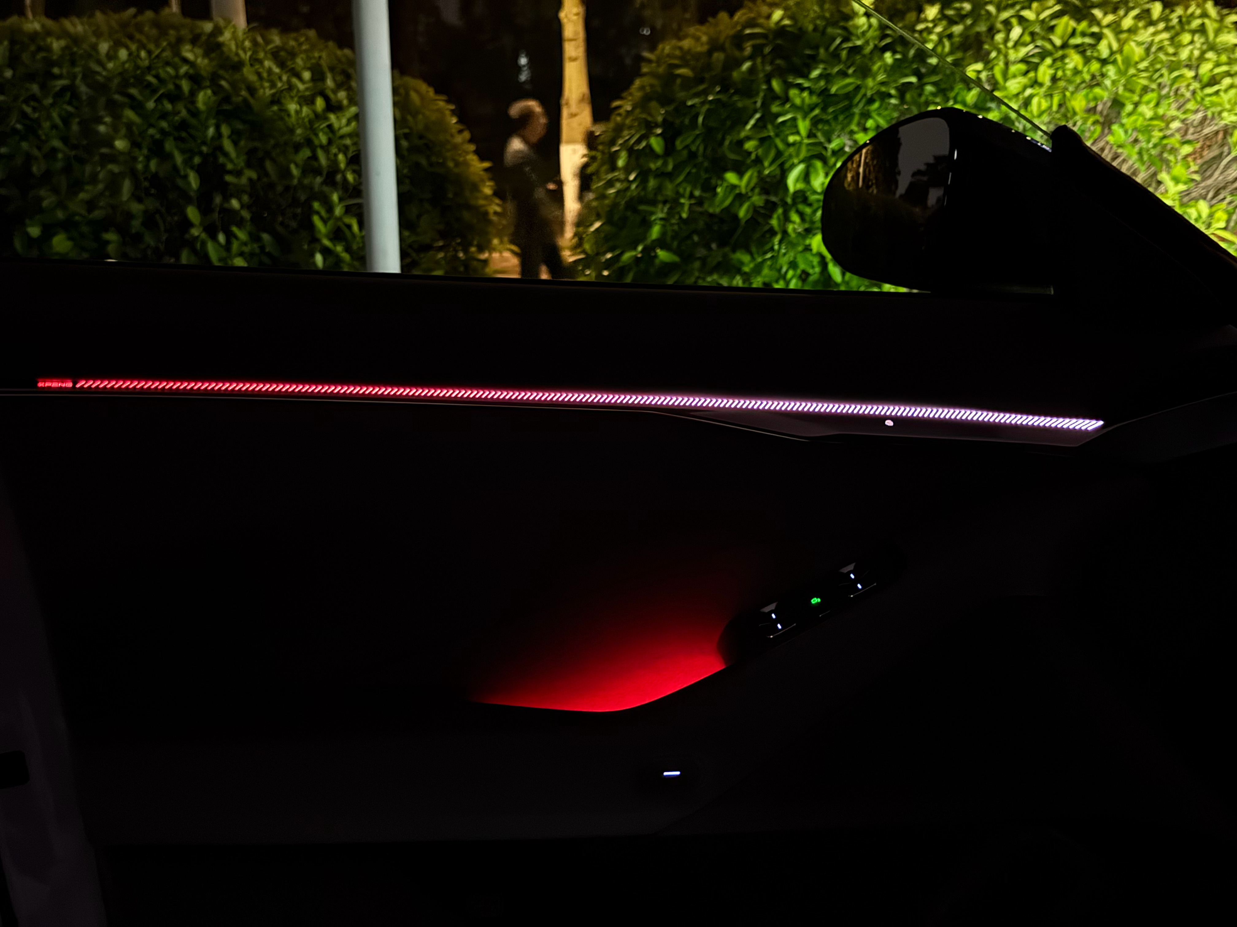 图二是小鹏 P7,P7 的氛围灯是外露的、密集的竖条组成的光带,我总觉得看上去眼睛花、对不上焦。