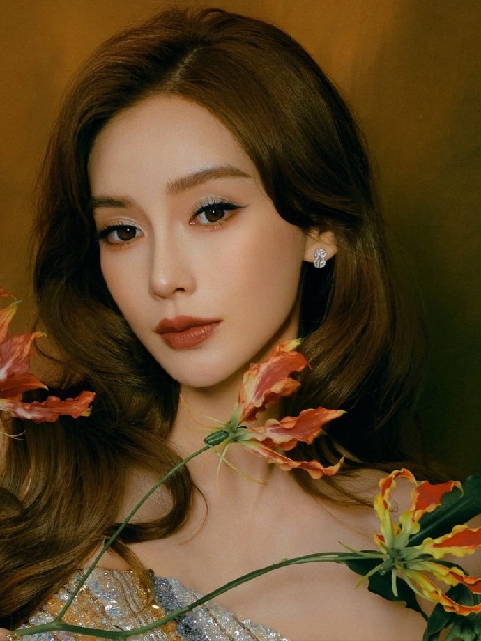 angelababy光影繁花绕身花影为伴,眉眼含章。暖棕光影晕开东方意韵,鎏金裙