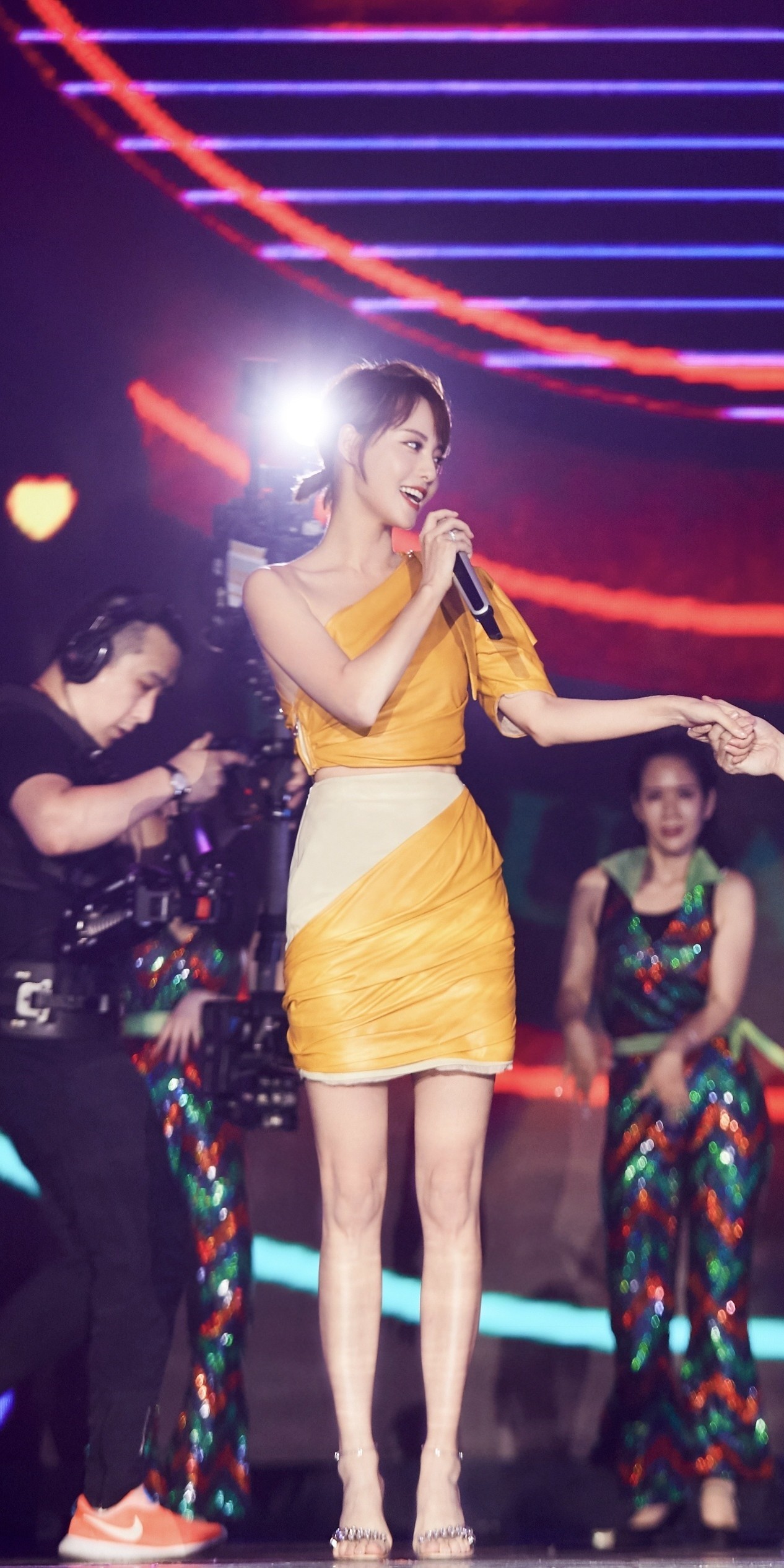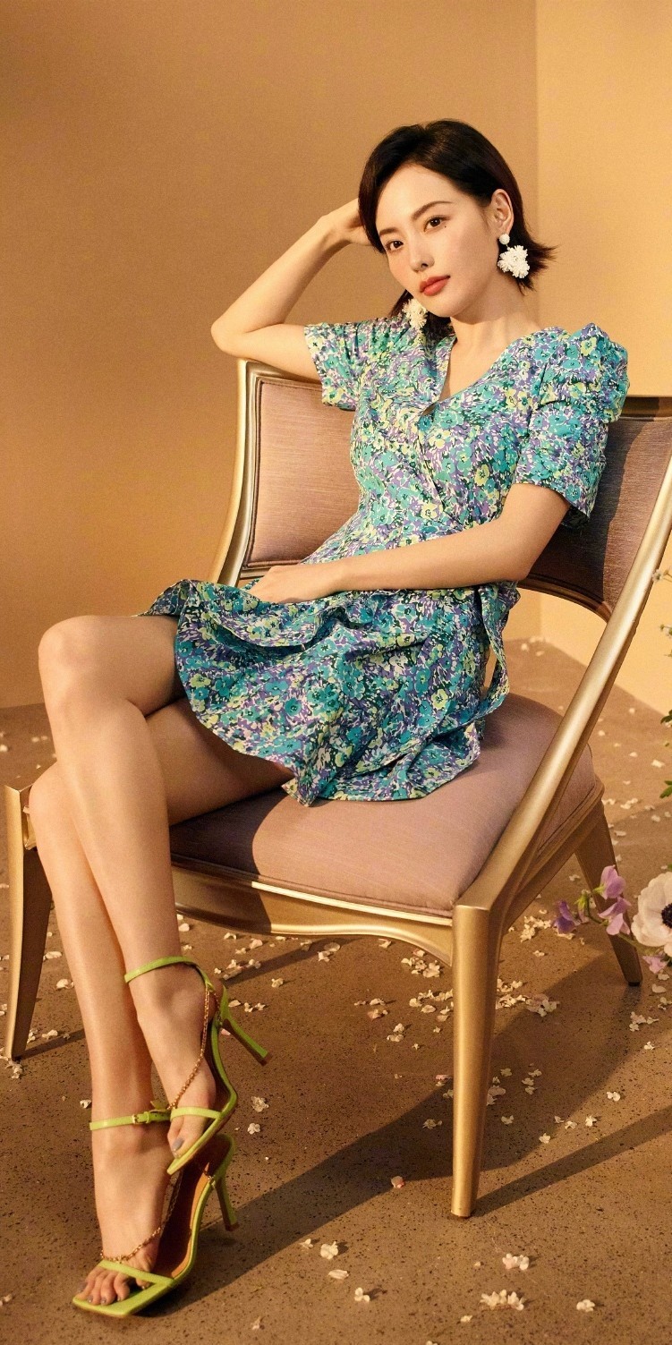 张嘉倪,一字带高跟大长腿,身材还是不错的。张嘉倪