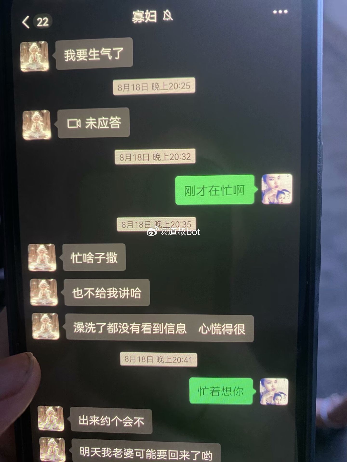 网友爆料,发现了小三聊天记录“见面的意义是为了宣泄,不见面时积压在心里浓浓的爱意