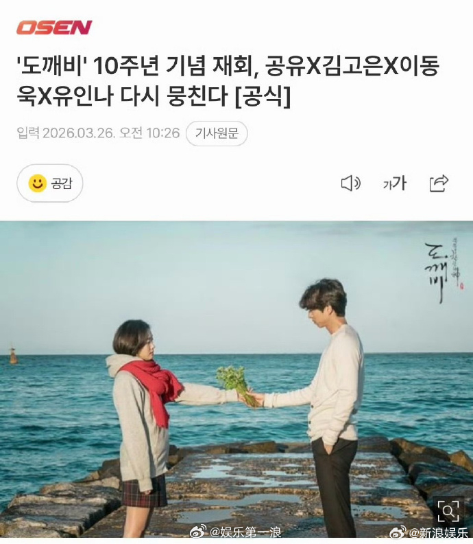 鬼怪将播出10周年特辑 据韩媒,《孤单又灿烂的神:鬼怪》预计今年上半年播出10周年特辑,孔刘、金高银、李栋旭、刘仁娜全员回归,再次聚在一起开始短暂的旅行,回顾经典场面、经典台词和作品留下的特别意义。都十年了!