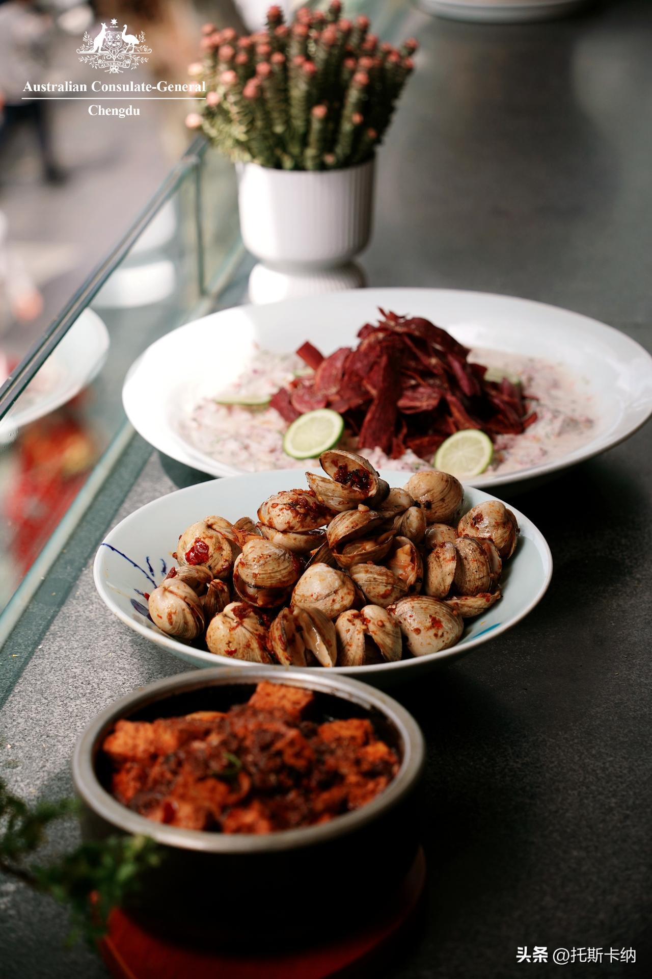活动中,澳大利亚原住民料理与川菜这两大底蕴深厚而又鲜活生动的饮食文化碰撞出别样火花——“巴适Arcul”(原住民香料爆炒蛤蜊)、洛神渍红鲷鱼、澳牛麻婆豆腐等创意菜品令人耳目一新,回味无穷。