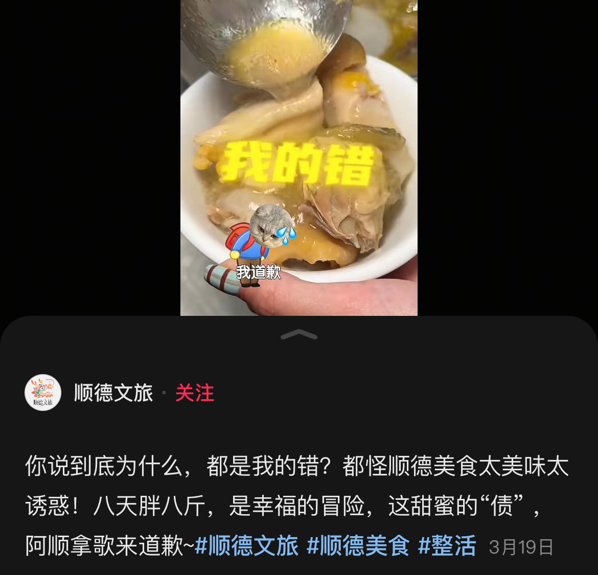 顺德文旅给8天吃胖8斤女子道歉感觉顺德文旅道歉不用心呢不得说明下这些让人发胖的美