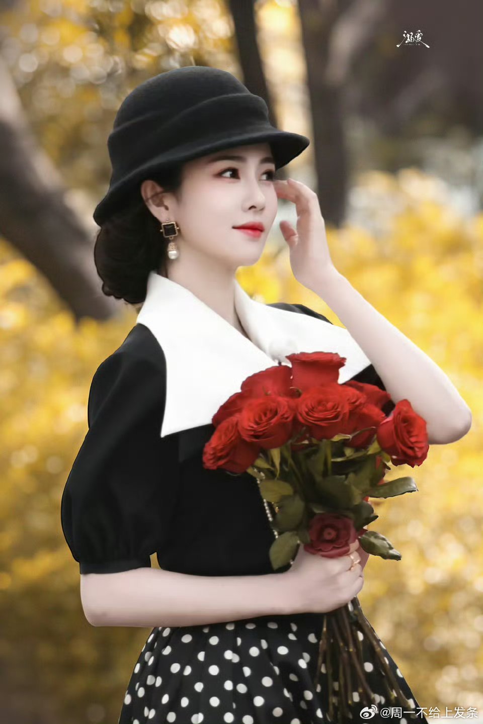 白鹿 谁懂啊!白鹿跑男造型直接从民国画报走出来~波点裙配礼帽,红玫瑰超吸睛,30