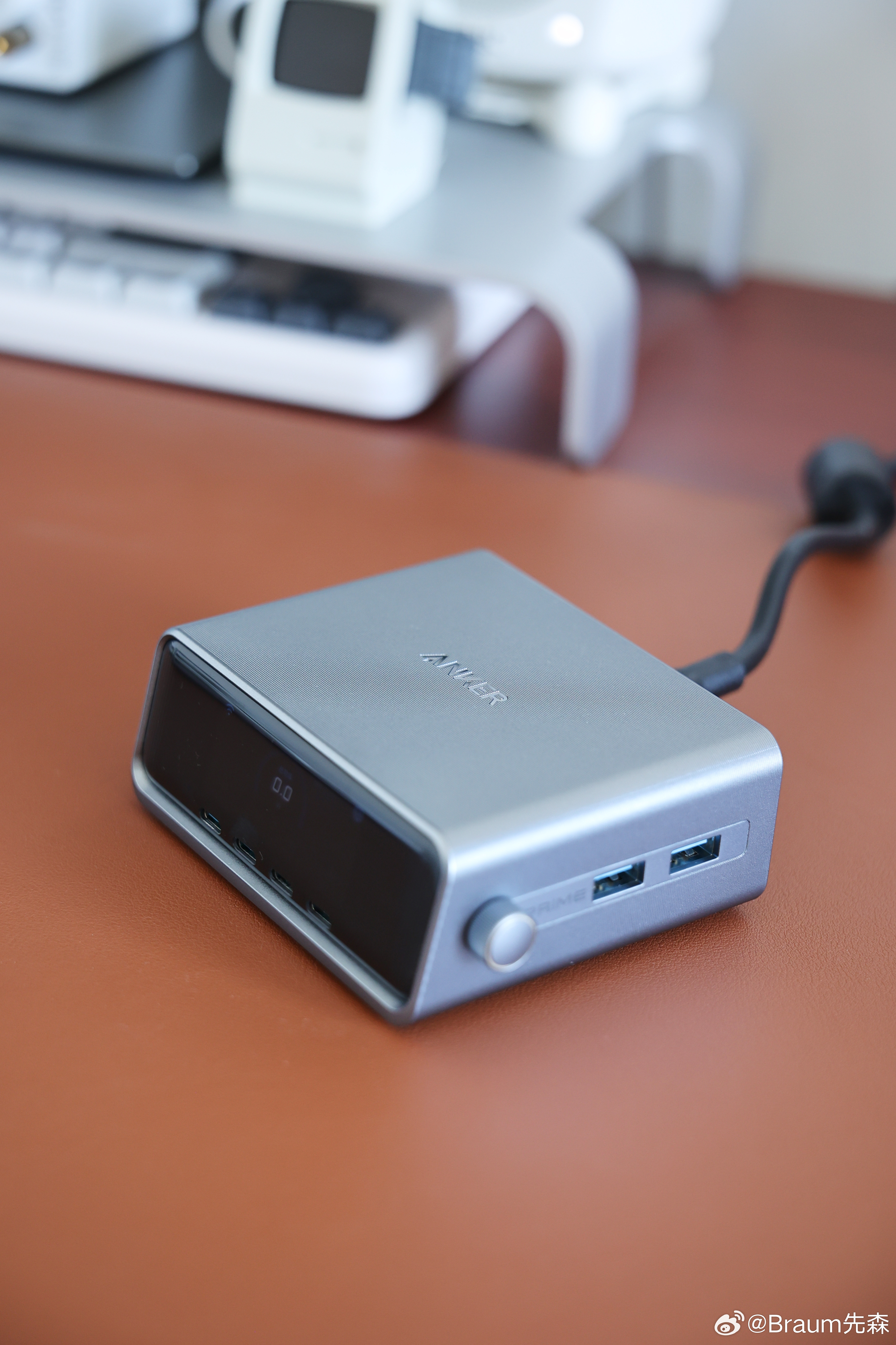 Anker这个桌面充挺神的,新款Pro+加了小米120W和华为66W的快充支持,充电能直接看到快充开启,并且提高了屏幕极限亮度,白天也清晰。