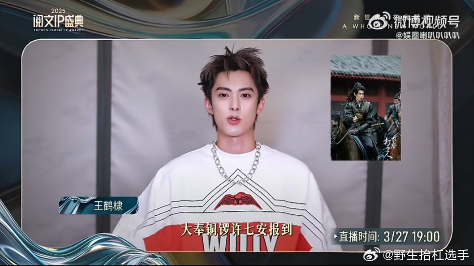 王鹤棣派许七安出征阅文盛典王鹤棣虽未到场,许七安却以铜锣手势亮相阅文盛典,一整个