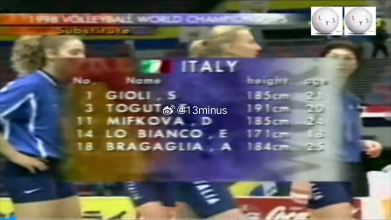 考古视频和队员,原来98年世锦赛,皮女、焦丽、罗比安科、托古特就开始打世界大赛了