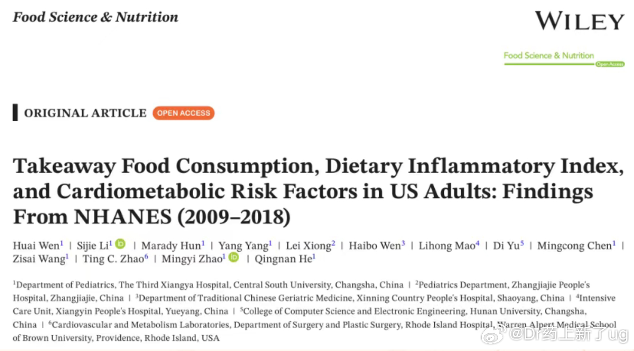 最新发表在《Food Science & Nutrition》上的权威研究,用 8556 人 的大数据,把「外卖→炎症→健康风险」的链条扒得明明白白👇