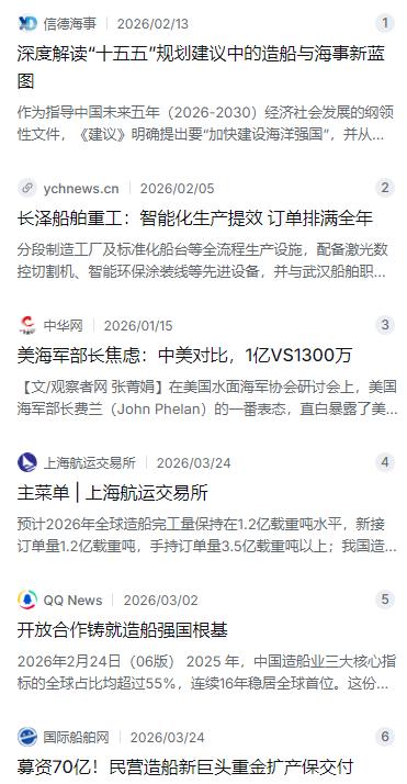 中国造船速度很快,但美国专家提醒,全世界都被中国骗了,中国真正厉害的其实另有隐藏底牌。 麻烦看官老爷们右上角点击一下“关注”,既方便您进行讨论和分享,又能给您带来更多优质的内容,感谢您的支持! 最近几年,中国造船业在国际上的表现确实抢眼。2025年的数据刚出来,咱们的造船完工量、新接订单量、手持订单量这三个核心指标,占全球的份额分别是56.1%、69%和66.8%,算下来已经是连续16年稳坐全球第一的位子了。外行人看热闹,觉得中国造船厉害就是厉害在速度快、交船多,但美国那边有专家专门做过分析,说全世界可能都低估了中国,甚至可以说被“骗”了——中国手里真正的底牌,压根儿不是造船速度本身,而是藏在速度背后的那套东西。 美国海军部长费兰今年1月份在美国水面海军协会研讨会上讲了一通话,话里话外透着焦虑。他说美国现在所有造船项目都“一团糟”,进度滞后、预算超支,而中国制造业的劳动力规模大概有1亿人,美国只有不到1300万。他还引用了一个数据,2022年中国在建船舶数量大概1800艘,美国只有5艘。这个对比确实扎心,但费兰看到的还只是表面。中国造船业真正让对手感到无力的,是背后那个从钢铁冶炼到动力系统、从通信导航到内部装潢,几乎啥都能自己造的完整工业体系。 这套产业链到底有多全?这么说吧,造一艘船需要的东西,钢材咱们自己能产,而且是全球最大的粗钢生产国;船用发动机,不管是低速柴油机还是双燃料主机,国内都有成熟的制造能力;导航通信设备,这些年国产化替代的步子迈得很快。更关键的是,这种全产业链的本土化供应,意味着外面闹什么幺蛾子,比如原材料价格波动、国际物流不畅,咱们受到的冲击要比别人小得多。这就好比做菜,别人家还得去超市买菜,咱们自己后院就种着,吃啥随时摘。 除了产业链齐全,还有一个隐藏得更深的底牌,就是工业组织能力的全面提升。过去造船像盖房子,从地基开始一层一层往上垒,周期特别长。现在不一样了,国内不少船厂搞起了模块化生产,把一艘船分成几十个分段,像拼乐高一样在不同车间同时建造,最后再总装起来。湖北长泽船舶重工的总经理打了个比方,说以前造船要12个月,现在采用模块化方式,工期能缩到6个月。 数字化和智能化的投入也在加速。恒力重工今年3月刚披露了一个大手笔的扩产计划,准备募资70个亿,其中一大块要投到绿色智能高端船舶制造一体化项目上,全面引入工业互联网、大数据、AI算法这些新技术,搞智能车间和全流程数字化管理。这种投入不是个别企业的事,而是整个行业的普遍趋势。中国船舶工业行业协会的报告里也提到,船企正在加快智改数转,用智能机器人和自动化生产线提升效率。从“制造”到“智造”的转变,正在实实在在地发生。 美国专家为什么会说“全世界都被中国骗了”?因为很多人只盯着船台上密密麻麻的在建船舶,觉得中国厉害就是厉害在人多、干活快。但真正让中国造船业有底气的是,它已经形成了一个从研发设计到配套服务、从硬件制造到软件管理的完整生态。这种生态的优势是系统性的,不是单点突破能比的。哪怕你在某个环节比我强,但我要把整条链子都补齐,你就得花大价钱、大时间。 这种系统性优势的战略价值,在国家层面体现得更清楚。海运是全球贸易的命脉,中国作为世界第一大货物贸易国,90%以上的进出口物资靠海运。如果造船能力捏在别人手里,这条命脉就不安全。反过来,自己掌握了从船厂到配套、从设计到建造的全链条能力,海运安全和能源运输的主动权就握在自己手里。这也是为什么“十五五”规划建议里明确提出要“巩固提升船舶产业在全球产业分工中的地位和竞争力”,还要“提升产业链自主可控水平”。 说到绿色转型,中国造船业也没落下。2025年咱们新接的绿色船舶订单,国际市场份额占到69.2%,也就是说全球差不多七成的绿色船舶订单都被中国船企拿下了。LNG动力船、甲醇双燃料船、氨燃料船这些新能源船型,国内船厂不光能造,还在往批量交付的方向走。张锦岚院士解读“十五五”规划时也提到,要加快发展绿色燃料船舶,抢占绿色船舶发展的制高点。这种技术路线的前瞻布局,让中国造船业在未来全球竞争中又多了几张牌可打。 从“制造大国”到“制造强国”,虽然只差一个字,但含金量完全不同。过去我们靠的是规模和速度,现在靠的是产业链的完整度、组织效率的提升、技术路线的领先。中国船舶工业协会的数据显示,2025年咱们在18种主要船型中,有16种新接订单量位居全球第一。这不是偶然,而是系统性优势的自然结果。 美国海军部长费兰说美国必须转入“战时状态”来追赶差距,这话听起来挺唬人,但真正懂行的人知道,造船业的差距不是靠喊口号能追上的。一套完整工业体系的形成,需要几十年的积累和沉淀,需要无数上下游企业的协同配合,需要政策引导和市场机制的双重驱动。这些都不是靠一个“黄金舰队”计划就能解决的。