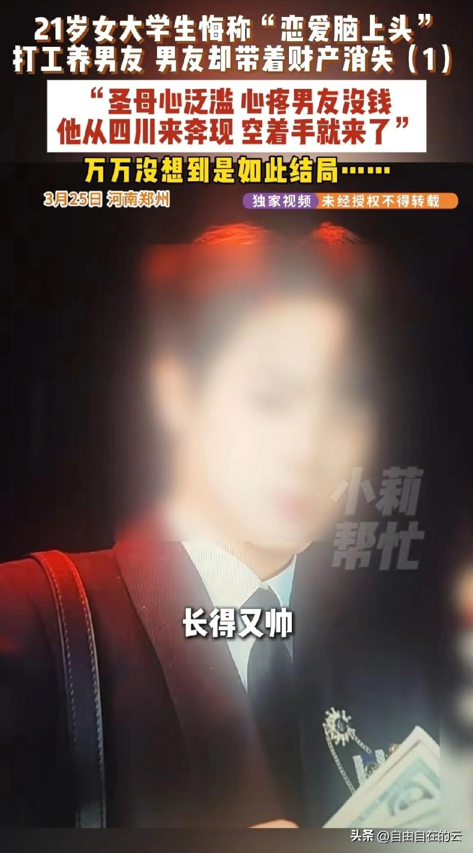 河南21岁女大学生,打游戏时交了一个男友,男友是男主播,说公司没给他发工资。女大学生就说我养你啊,然后每天给男友点外卖,发红包,在给男友花了3000多块钱后,男友从四川坐飞机投奔她来了。机票还是她给买的。 男友来了后,所有花销都是她的,她本来打一份工的,开始打两份工。女孩说她对男友掏心掏肺,无所保留。给他租7000块的苹果手机,4000块的电脑,男友也不用工作,就在家打游戏。 两人在一起20多天后,女孩去外地出差时男友提出分手,说打游戏又认识了别人。女孩赶紧中断出差跑回来挽留,结果到家后她傻眼了。男友把两部苹果手机,一个是她的备用机,还有电脑、电动车都给偷走了。 女孩联系男友让他把东西还回来,男友说苹果手机他自己用,其他的已经出手了,之后就拉黑了女孩。 女孩这才醒悟,说自己太傻了,就是恋爱脑上头。目前女孩已经报警。 女孩的男友是个男主播,当时看照片时长的挺帅的,女孩就心动了。所以女生记住,有些不能光看脸,内涵也很重要。 对于这件事,你怎么看呢?