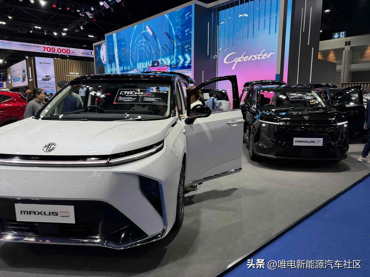 名爵展台[思考]MG毕竟深耕泰国多年了,带来的展车自然不少,就连Cyberster也是右舵的[思考]