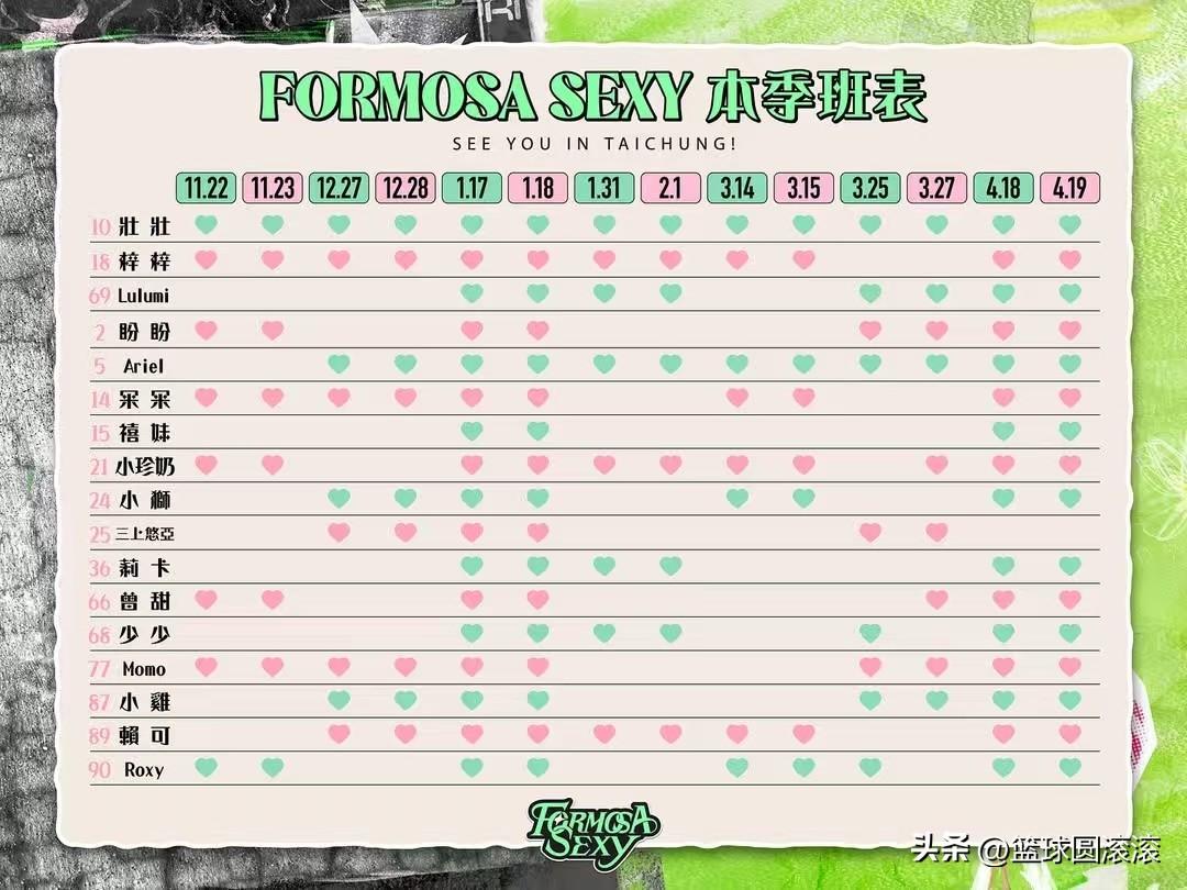 看了台湾省联赛的啦啦队班表,我直接惊掉下巴——人家连拉拉队都做到了精准排班、专属人设、固定场次,这运营细节,CBA真该抄作业! 先看这张「慕狮女孩」的班表,1.24和1.25两天的出场名单一模一样,郭郭、QUEENA、李艺斌等8位成员固定登场,连站位都没乱换。再看另一张「FORMOSA SEXY」的班表,更是把精细化做到了极致:每个啦啦队员都有专属编号,25号三上悠亚、69号Lulumi……哪天出场、哪场缺席,用不同颜色的爱心标得明明白白,粉丝不用猜,直接掐点蹲自己喜欢的小姐姐。 反观CBA,啦啦队更像「凑数工具人」:今天换一批明天换一组,队员没记忆点,观众看完就忘,连个固定班表都没有,更别说打造个人IP了。台湾省联赛早就把啦啦队当成核心流量入口:给队员起艺名、做专属人设、排固定场次,让粉丝像追球星一样追拉拉队员,甚至能靠「蹲班表」带动门票和周边销量。 别觉得这是「旁门左道」,职业体育的本质就是娱乐+情绪价值。NBA的Laker Girls、太阳队的Dancers,早就靠啦啦队文化圈粉无数;而我们的CBA,还在纠结「该不该让拉拉队穿得好看点」。当台湾省联赛的啦啦队已经能靠精细化运营上热搜、带流量时,我们还在浪费最有潜力的「破圈武器」。 CBA想真正破圈,不能只靠球员和比赛。学学人家的思路:把啦啦队当成品牌来运营,给每个姑娘做人设、排班表、造话题,让观众进场不仅看球,还能为喜欢的拉拉队员应援。当「今天谁上场跳舞」都能成为球迷热议的话题时,联赛的热度和商业价值,自然会水涨船高。 别再喊「没人看CBA」了,先从把啦啦队班表做细开始吧!✅
