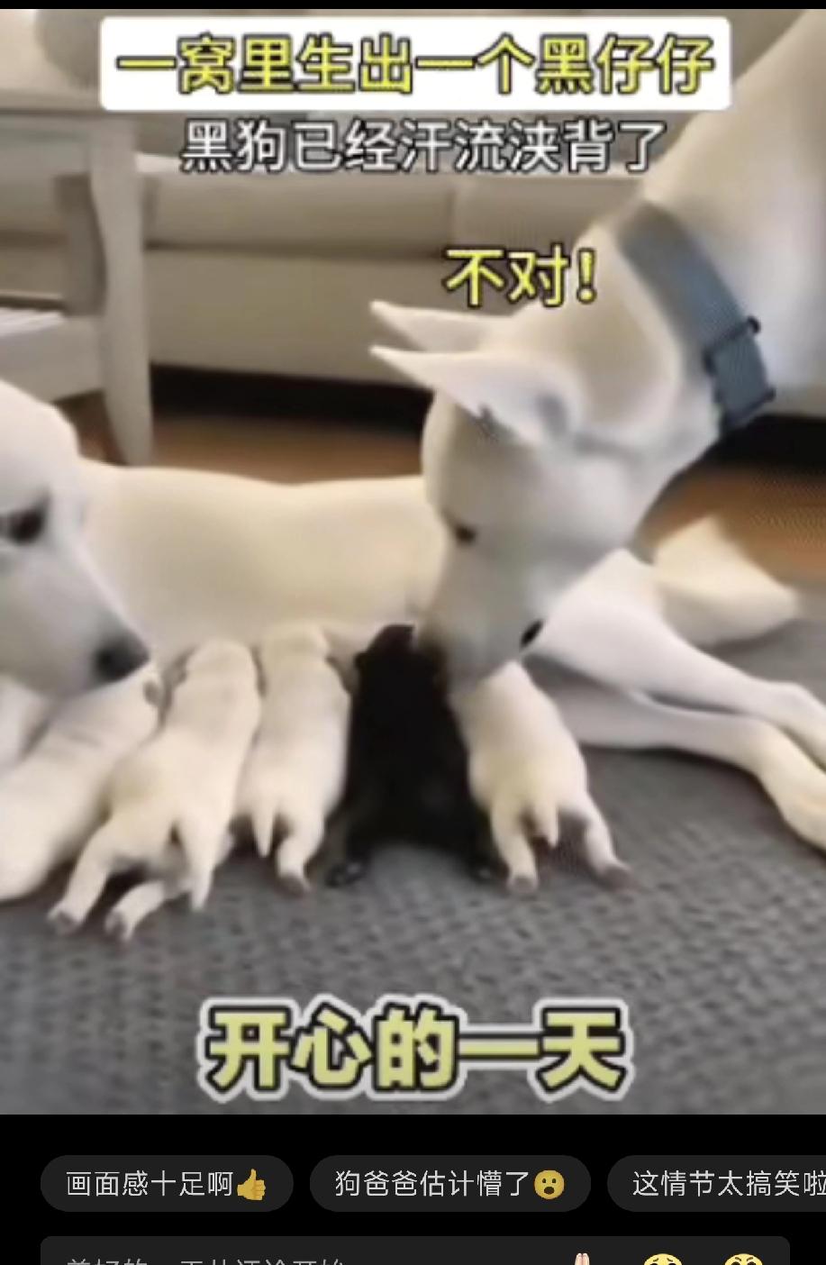 这是全网最无法释怀的狗爸爸,因为它的老婆给它生了一窝可爱的狗宝宝,可偏偏有一只不同,在奶白色的一堆里出现了一抹黑。 狗爸爸发现不对,叼起那只黑宝宝一扭头,竟与好兄弟大黑来了个四目相对,哈哈哈… 这段画面能瞬间戳中全网网友的笑点,压根不是靠刻意编排,全是毫无剧本的真实感在发力。 狗爸爸的反应全程没有半分表演痕迹,从察觉到狗宝宝毛色异样开始,情绪里就带着藏不住的疑惑,它盯着那只黑色小狗看了许久,迟迟没法像对待其他奶白色幼崽一样坦然接受,这份直白的较真,看着笨拙又好笑,却也是动物最本能的反应。 它没有多余的动作,只是单纯觉得眼前这只幼崽和其他宝宝不一样,和自己、和狗妈妈的外形特征完全不匹配,心里的疑惑越积越多,才会下意识叼起这只黑宝宝,想要弄明白究竟是怎么回事。 整个过程没有攻击性,也没有排斥的恶意,仅仅是出于对幼崽群体的本能认知,毕竟平日里它和伴侣朝夕相处,熟知彼此的样貌特征,突然出现格格不入的一只,心里犯嘀咕再正常不过。 偏偏就是这么巧,叼起宝宝转头的瞬间,正好对上一旁大黑的目光,这突如其来的对视,直接把整个画面的喜剧效果拉满。 大黑的反应也格外真实,没有躲闪,没有慌乱,就这么和狗爸爸静静对视,像是懵住了一般,反倒让原本只是疑惑的狗爸爸,瞬间多了几分说不清道不明的情绪,也让围观的网友忍不住捧腹。 谁能想到,宠物日常里一个突发的小片段,能成为全网热议的名场面,说到底,是这份毫无修饰的真实太打动人。 现在网上有不少刻意摆拍的宠物视频,设计好情节、训练好动作,看似有趣却少了几分烟火气,而这段画面不一样 没有提前铺垫,没有刻意引导,就是偶然捕捉到的瞬间,却鲜活又生动,每一个动作、每一个眼神都透着自然,让人看一次笑一次,越品越觉得有意思。 狗爸爸全程的状态都特别真实,从最初的疑惑不解,到叼起宝宝的试探,再到和大黑对视后的愣神,完全是小动物最直白的情绪表达,不会隐藏,不会伪装,心里想什么全都表现在动作里。 也正是这份纯粹,让这个普通的瞬间变得格外珍贵,没有复杂的剧情,没有煽情的铺垫,却能让人放下生活里的疲惫,单纯感受到一份毫无负担的快乐。 网友们之所以对这个画面念念不忘,不只是因为好笑,更多的是被这份简单的萌趣治愈。生活里大家总是被各种琐事牵绊,工作的压力、日常的烦恼,常常让人喘不过气 而这类真实的宠物趣事,就像生活里的小甜饼,不用费脑思考,不用纠结对错,只是看着两只狗狗的懵懂互动,就能瞬间心情变好,这也是它能快速走红的核心原因。 不用刻意用人类的思维去过度解读狗狗的行为,它们没有复杂的心思,狗爸爸只是单纯觉得幼崽毛色异样心生疑惑,大黑也只是被动对视陷入茫然,没有所谓的“心机” 没有额外的情绪,就是最纯粹的动物本能反应。我们不必深究背后的缘由,只需要享受这份自然带来的快乐就足够,毕竟这样毫无剧本的萌趣瞬间,在生活里本就难得一遇。 这段看似不起眼的小片段,没有华丽的拍摄手法,没有吸睛的包装,却能让全网网友反复回味,核心就在于它的真实与纯粹。 生活里的快乐往往都藏在这些不经意的小瞬间里,不用刻意追寻,不用精心打造,一份自然的、鲜活的小美好,就足以治愈日常的浮躁,也能让我们在忙碌的生活里,找到片刻的轻松与欢喜。 各位读者你们怎么看?欢迎在评论区讨论。