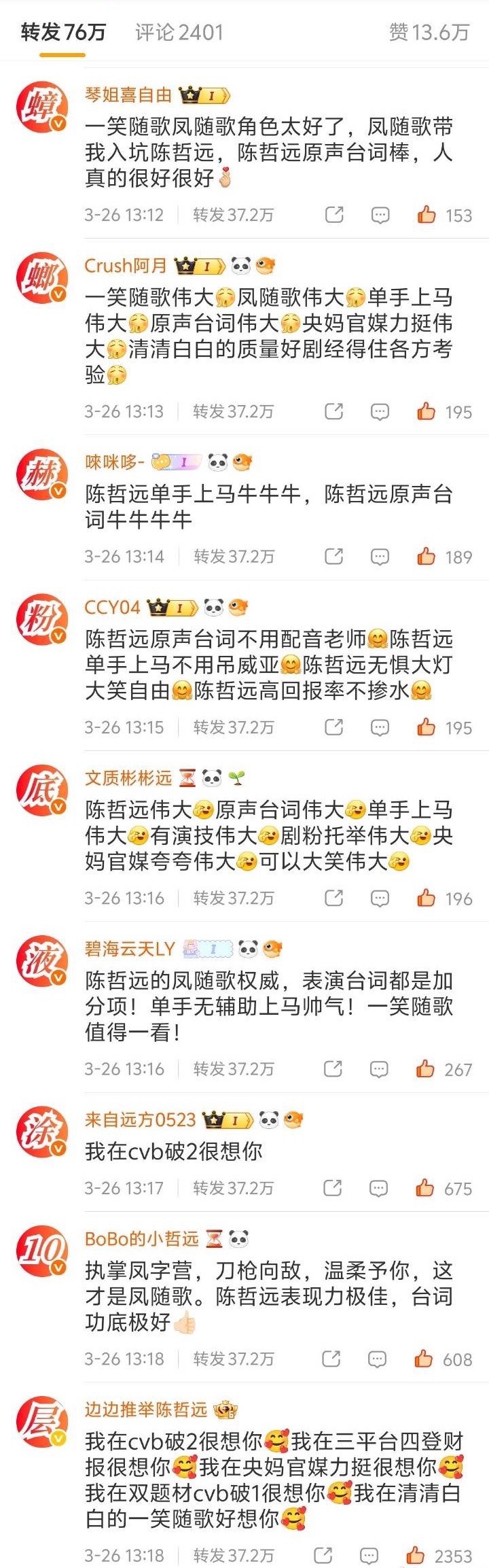 张凌赫陈哲远两家互相排字中