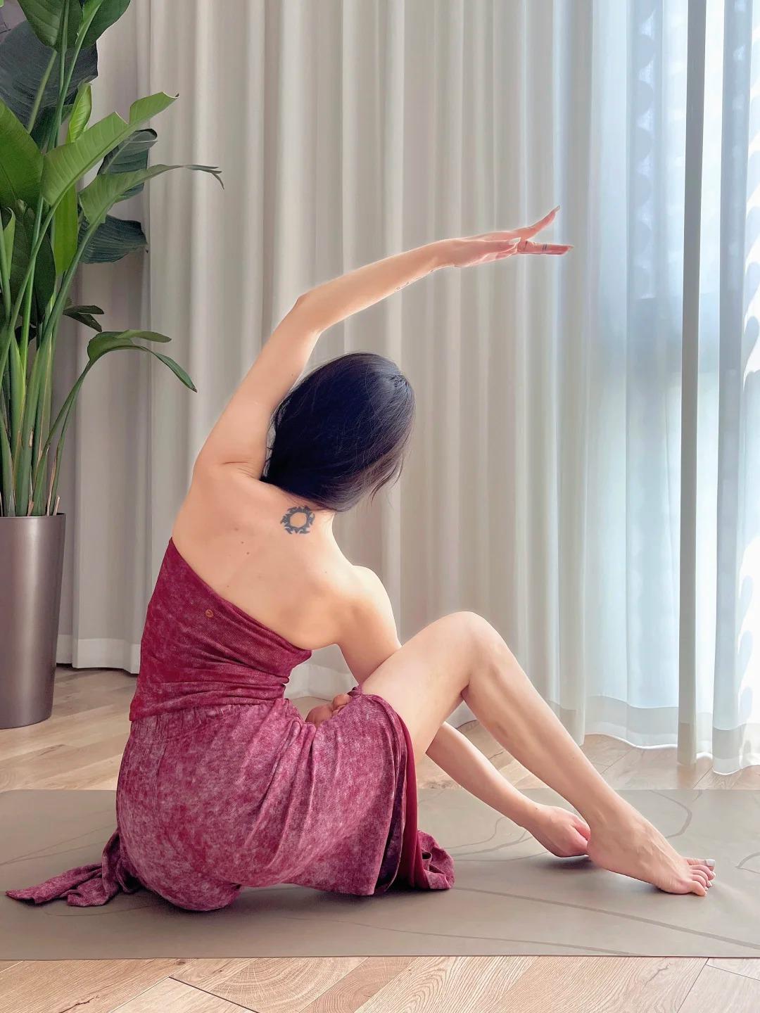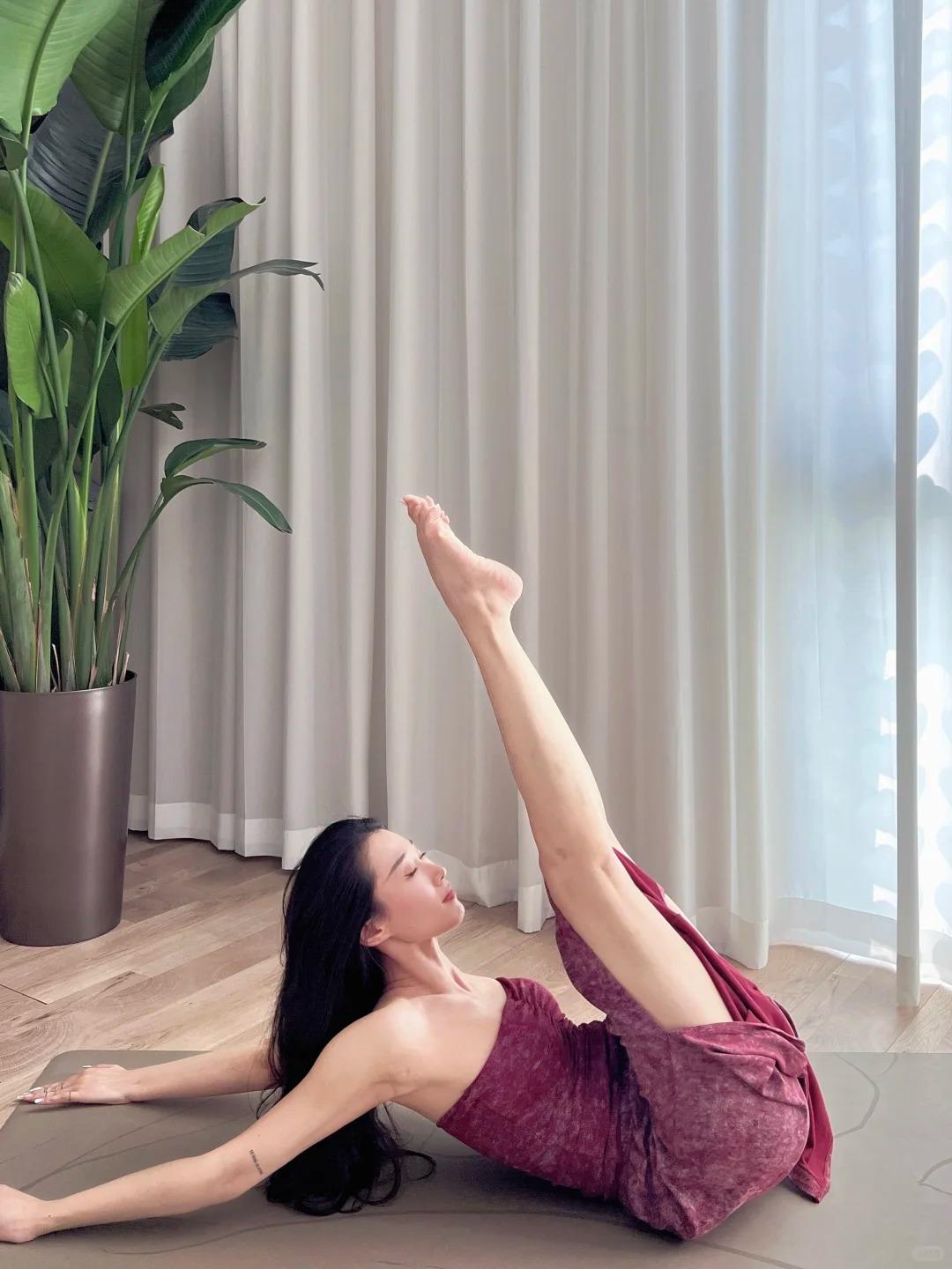 瑜伽日常|在暮色里伸展✨🌇 夕阳从不着急落下,把最后一缕暖光揉碎在瑜伽垫上,晕