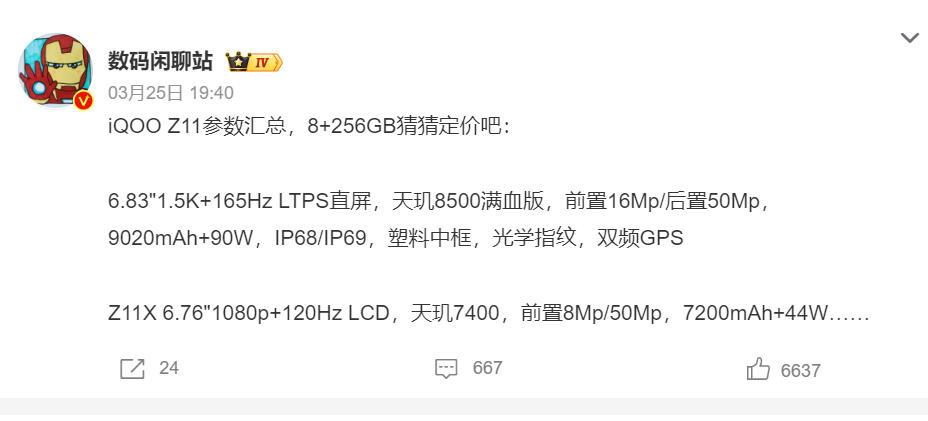 iQOO Z11今晚发布,目前确定会采用天玑8500满血版的处理器,拥有9020