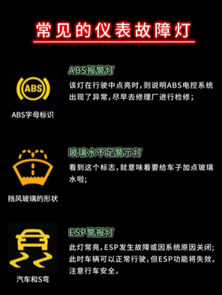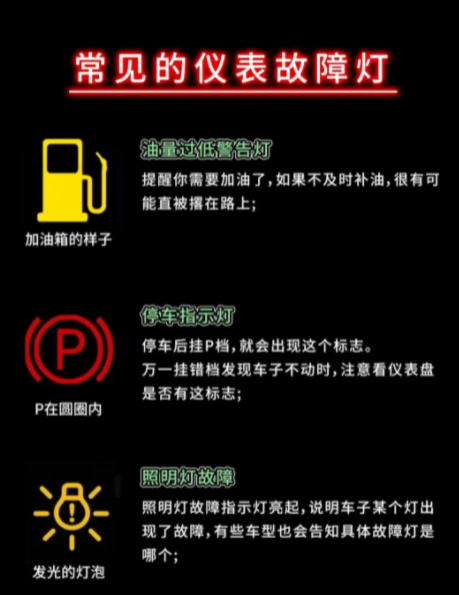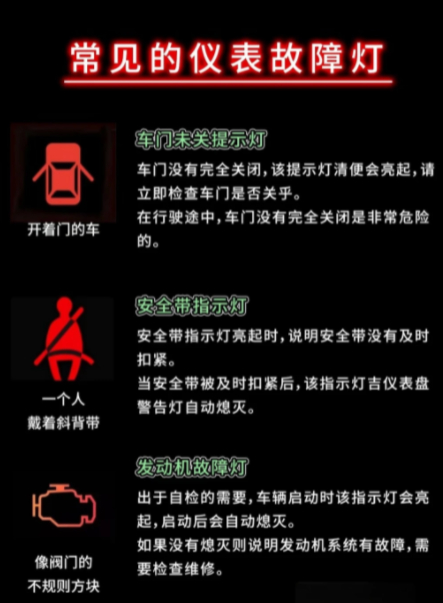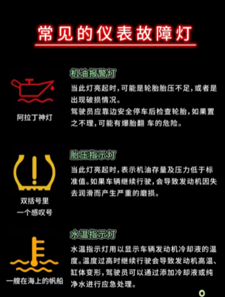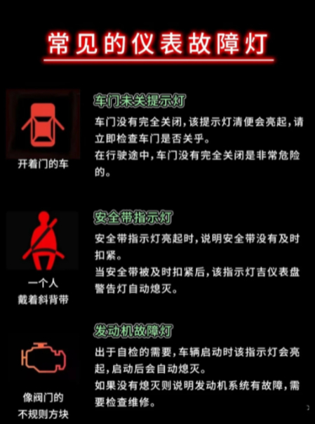 汽车故障灯详解,车主码住只知道开车,有时候仪表盘上亮一些红色的图标却不知道什么意思每次都需要去问别人,今天索性一次性整理个全的,新手车主码住了