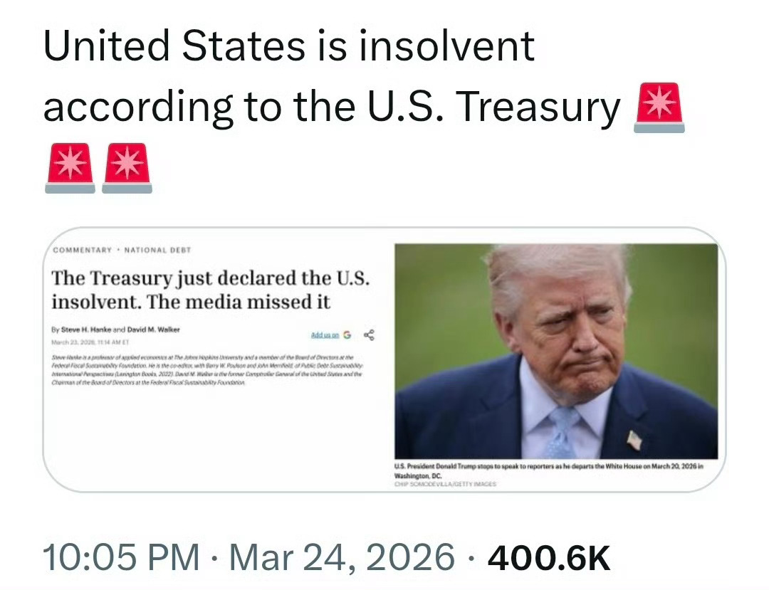 (图一)美国财政部自己承认了,美国已经资不抵债。但是,相信资不抵债的人只是少数。