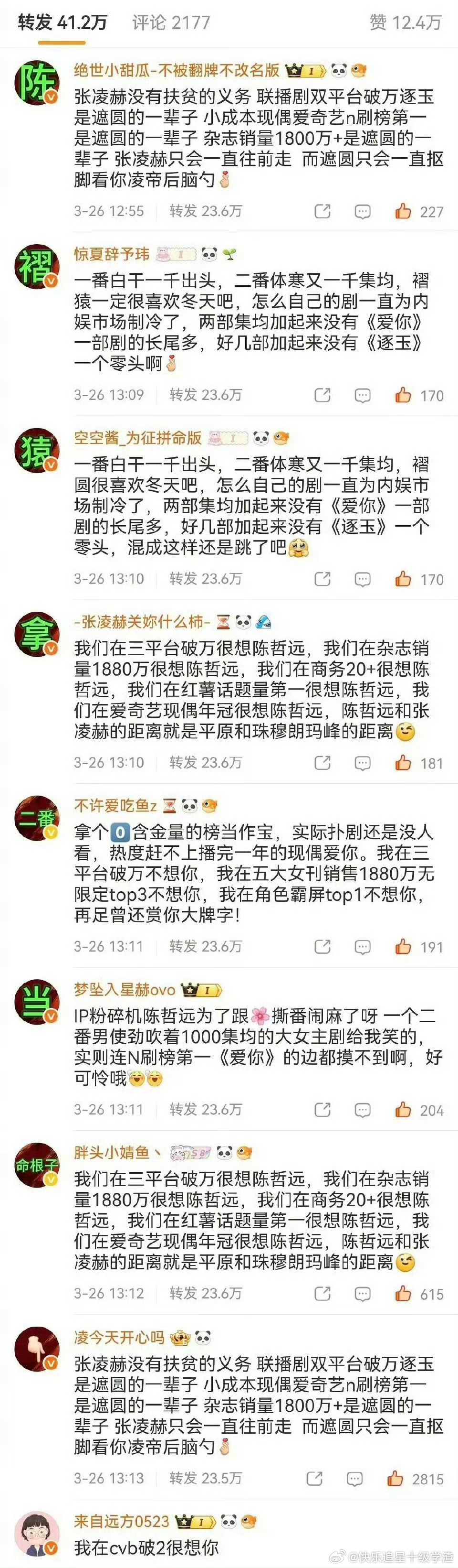 张凌赫陈哲远两家互相排字了