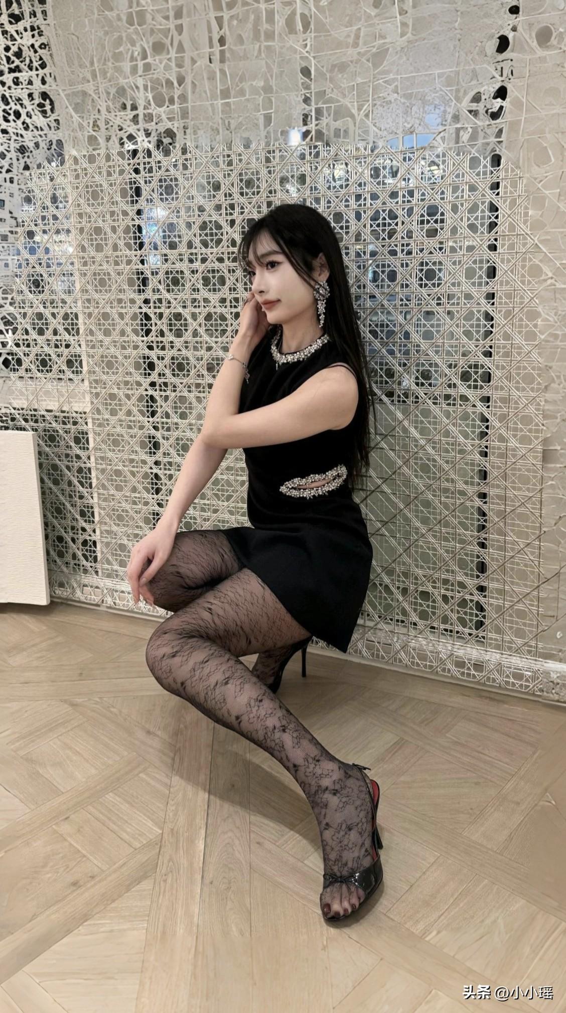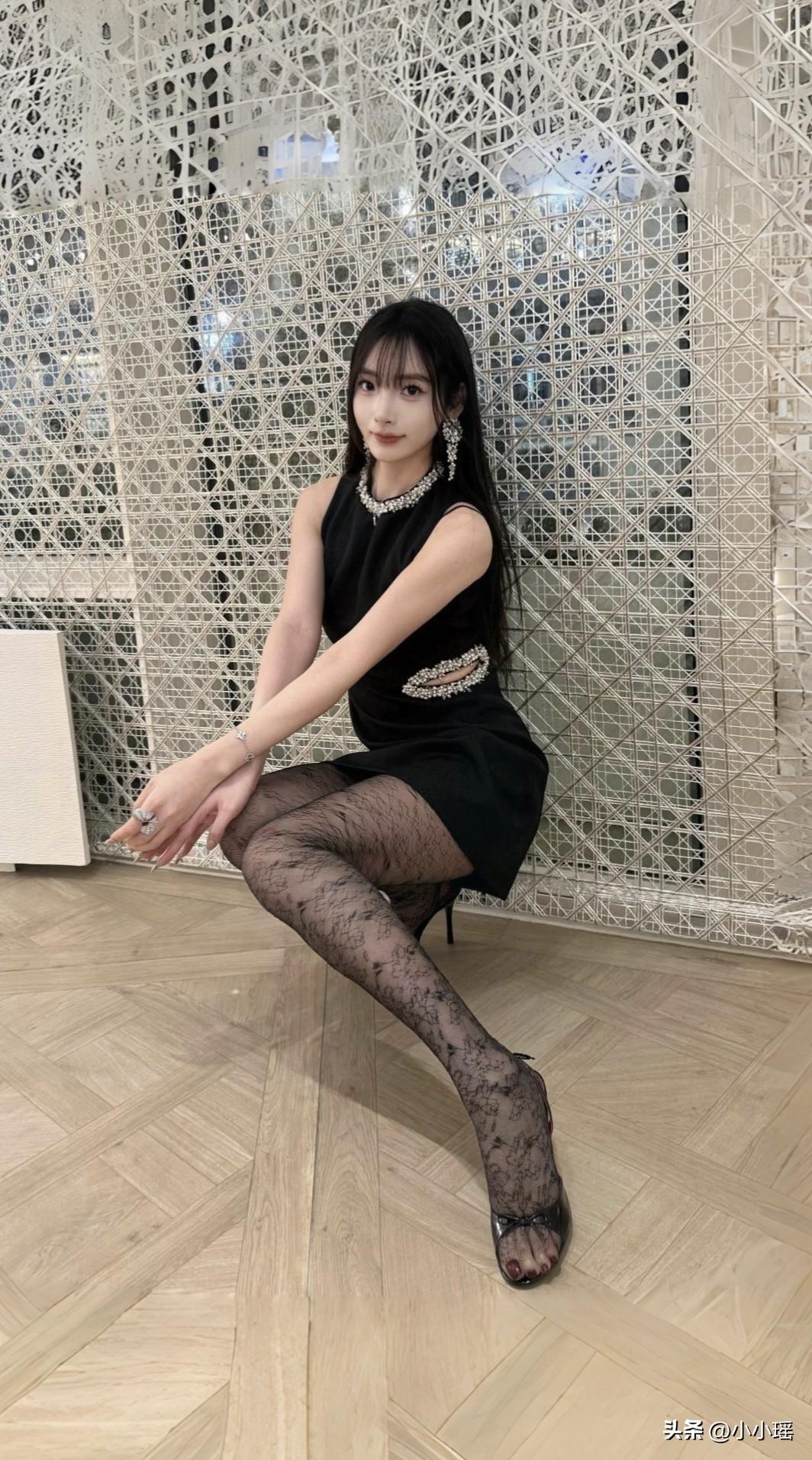 分享ootd穿搭 办公室一角随拍,黑色连衣裙配波纹黑丝加高跟,气质直接拉满,妥妥
