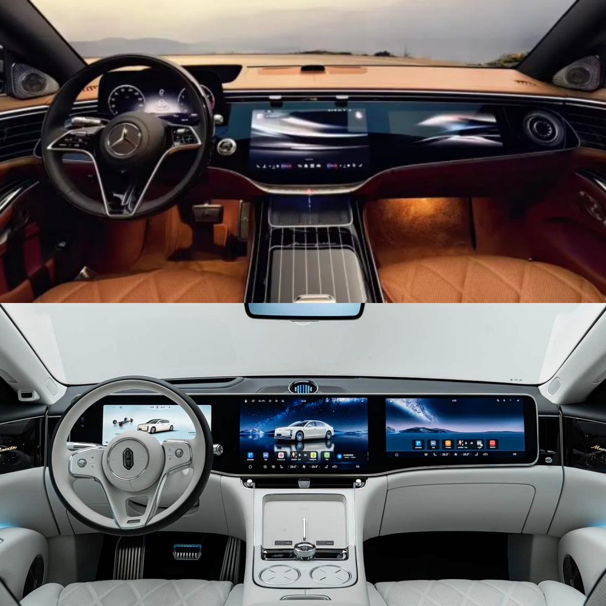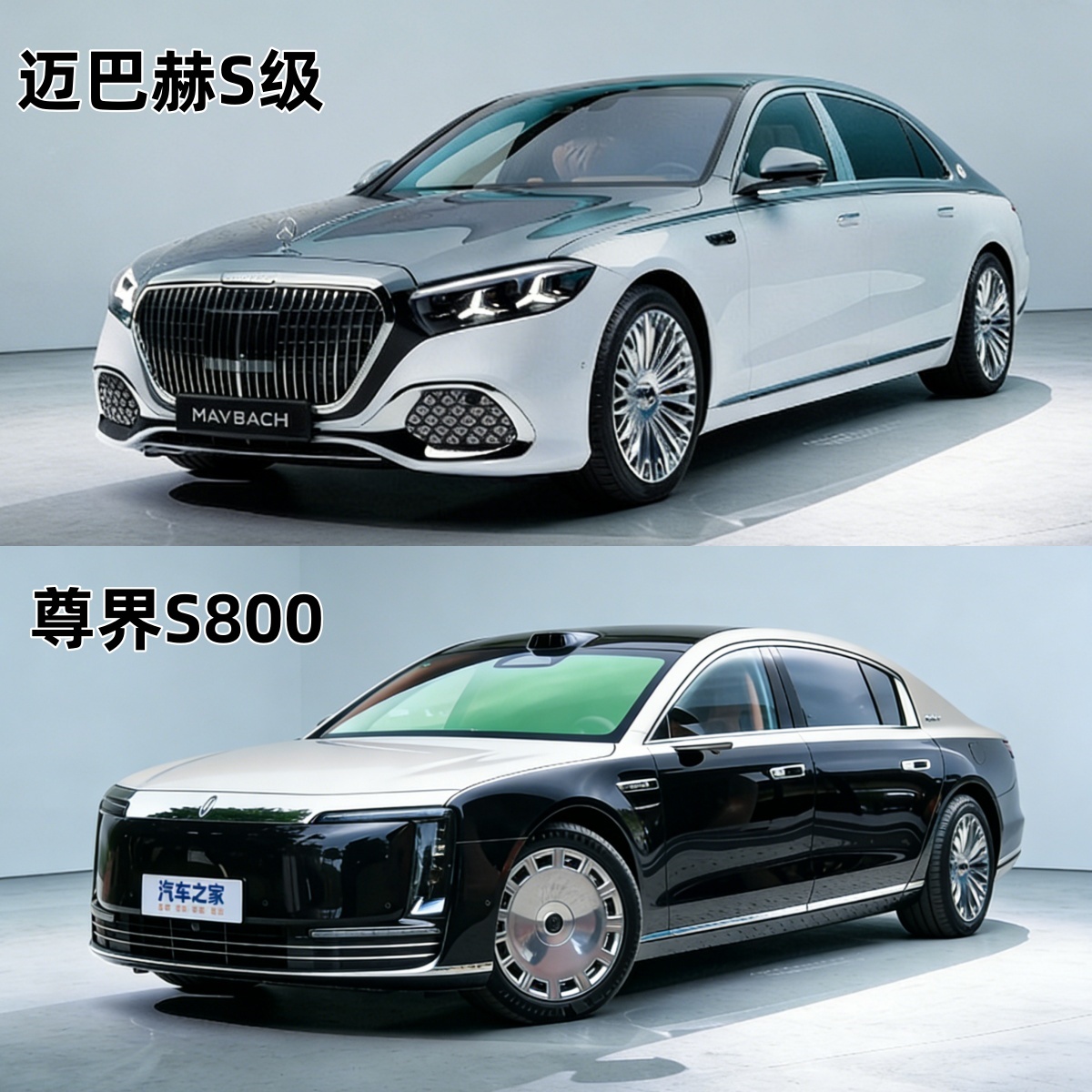 迈巴赫S对比尊界S800,谁能更胜一筹? 近日,改款的迈巴赫S级正式发布,外观、内饰都有升级,同为大型豪华超豪华轿车,尊界也是其强力对手,小编拿几张图做一下对比,大家看看才是你的理想座驾,欢迎评论区讨论